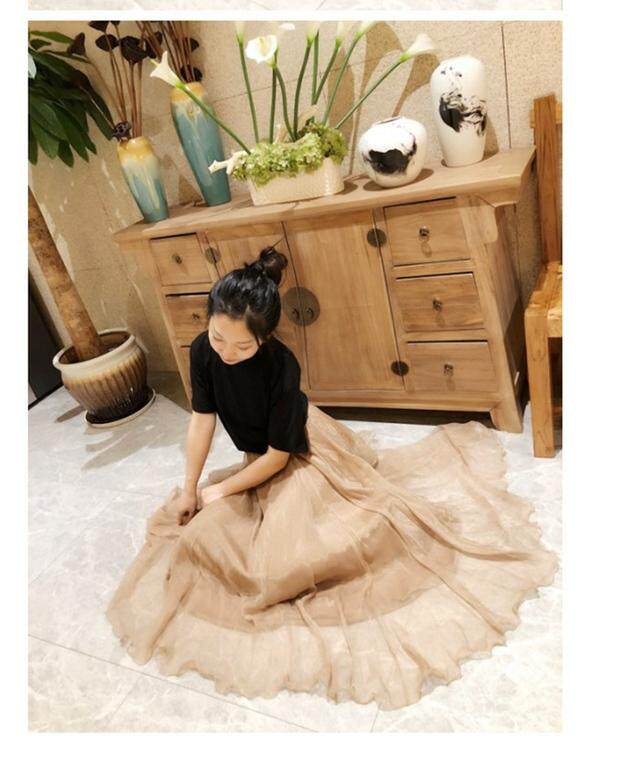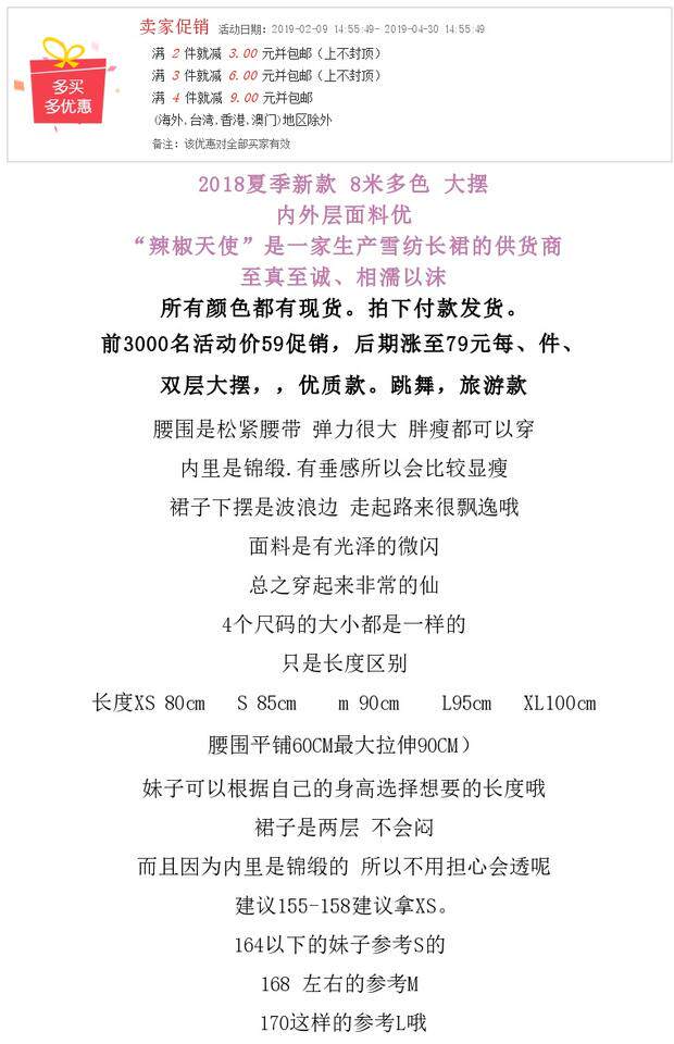 品质款2018夏季雪纺长裙,双层半身裙飘逸拖地8米,大摆裙度假仙女裙
