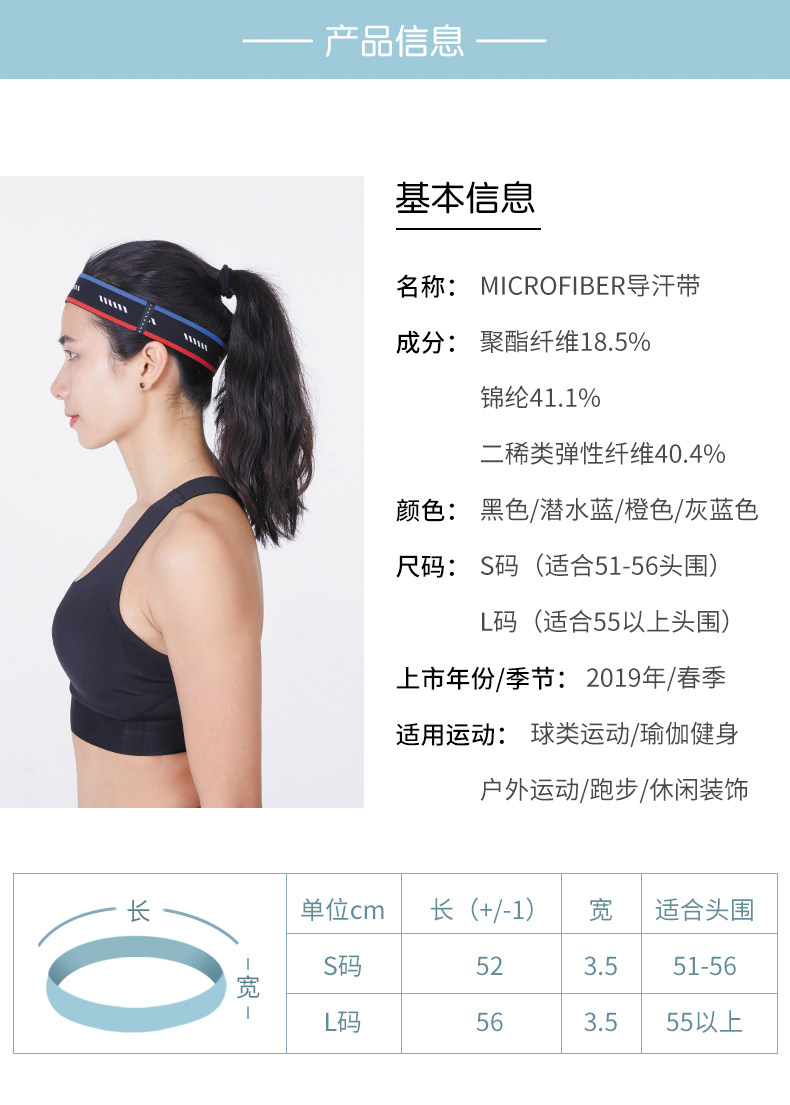 高弹力运动发带,佩戴方便,舒适透气,运动时能防止汗水滑落,双层结构,优质弹性材料,吸湿排干,自然洒脱,夏季必备,让你尽情挥洒激情。