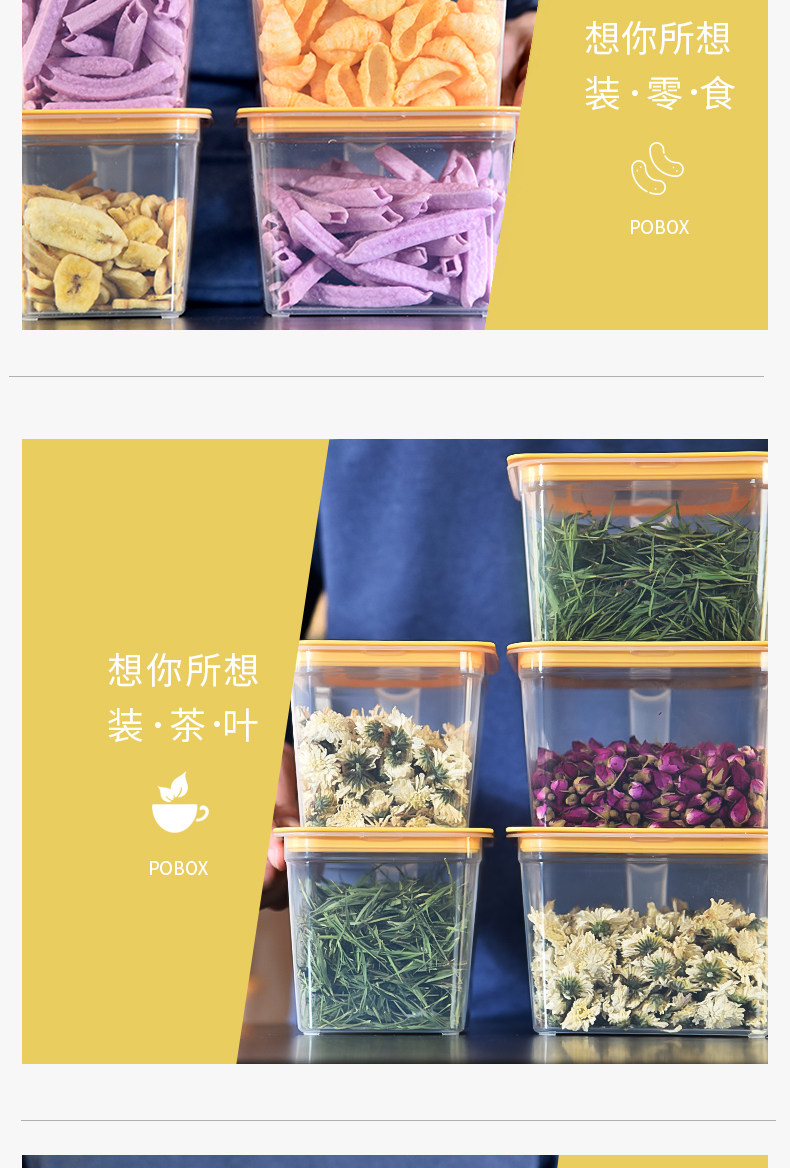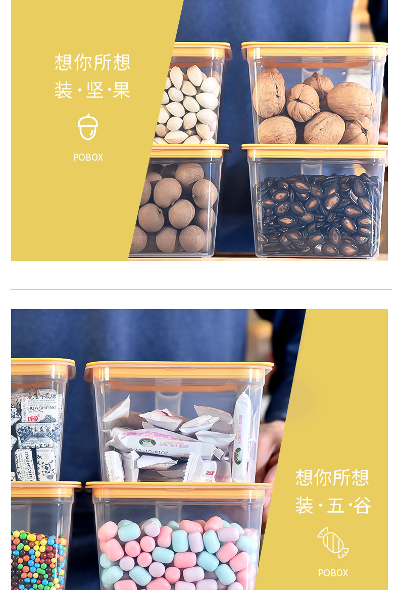 【4只装,超大容量】收纳零食,饭菜,干果的居家必备好物!环保材质,安全无毒,高韧性,抗老化能力强,时尚实用又美观,储物空间大,收纳合理,干净卫生拒绝凌乱。适用于不同居家环境!
