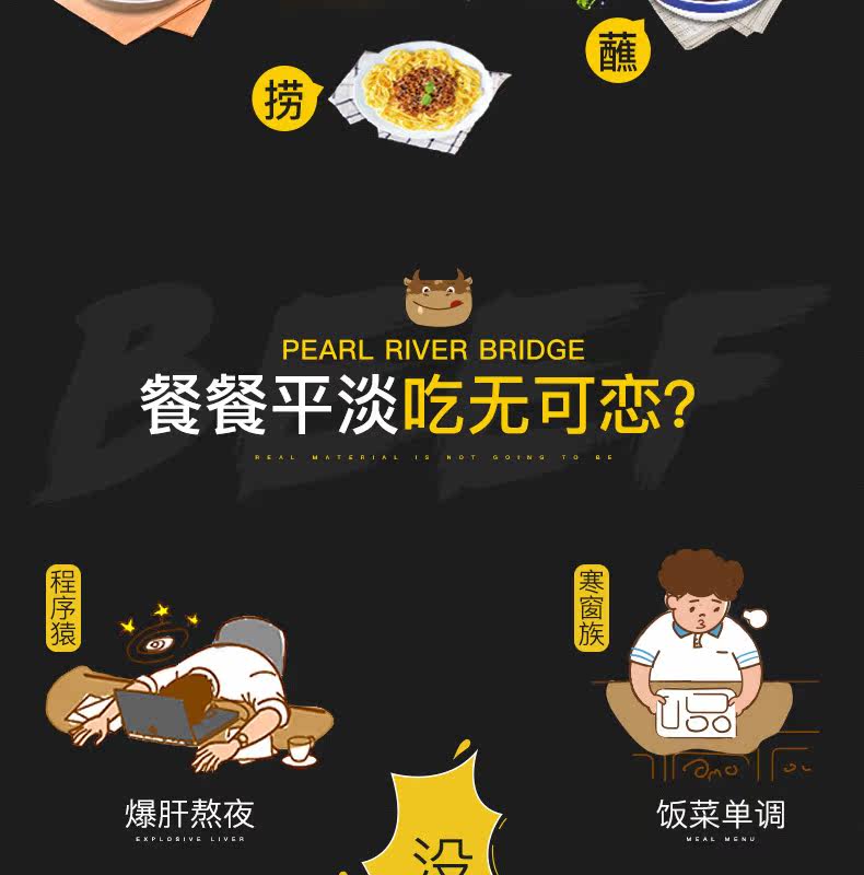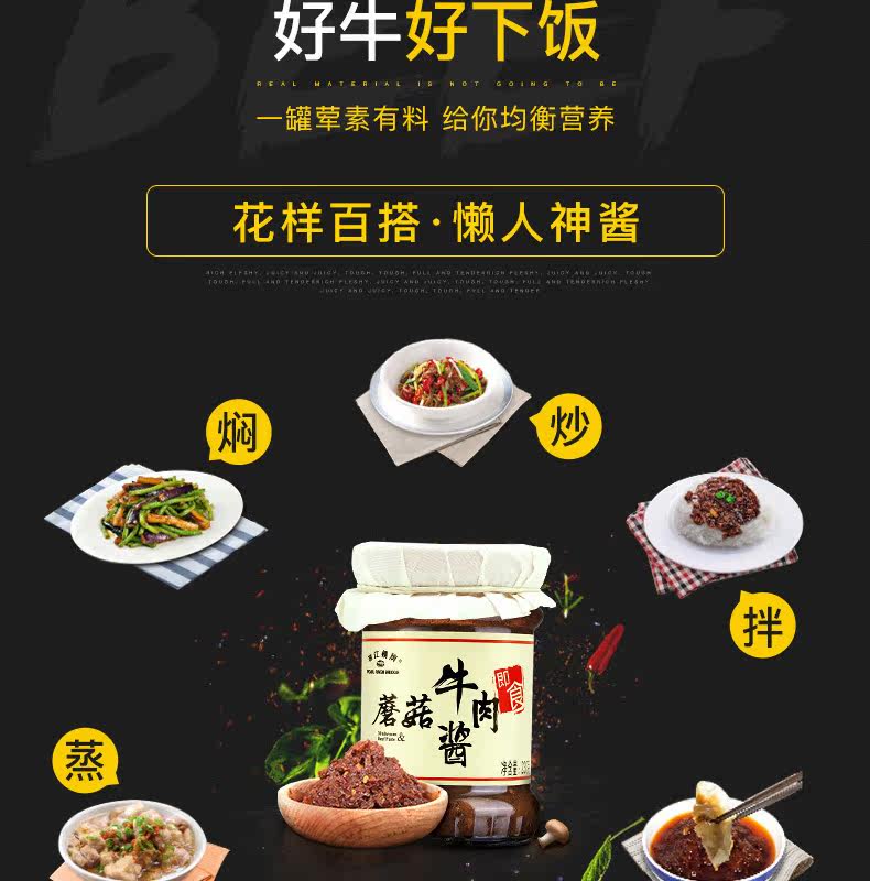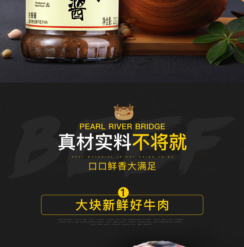 饭扫光香菇牛肉酱!荤素搭配,牛肉、香菇跨界组合!满满的都是嫩爽滋味。大块牛肉,有嚼劲,肉质紧密,略带弹性的口感,咀嚼后唇齿留香,耐人回味,打开你的味蕾!【赠运费险】