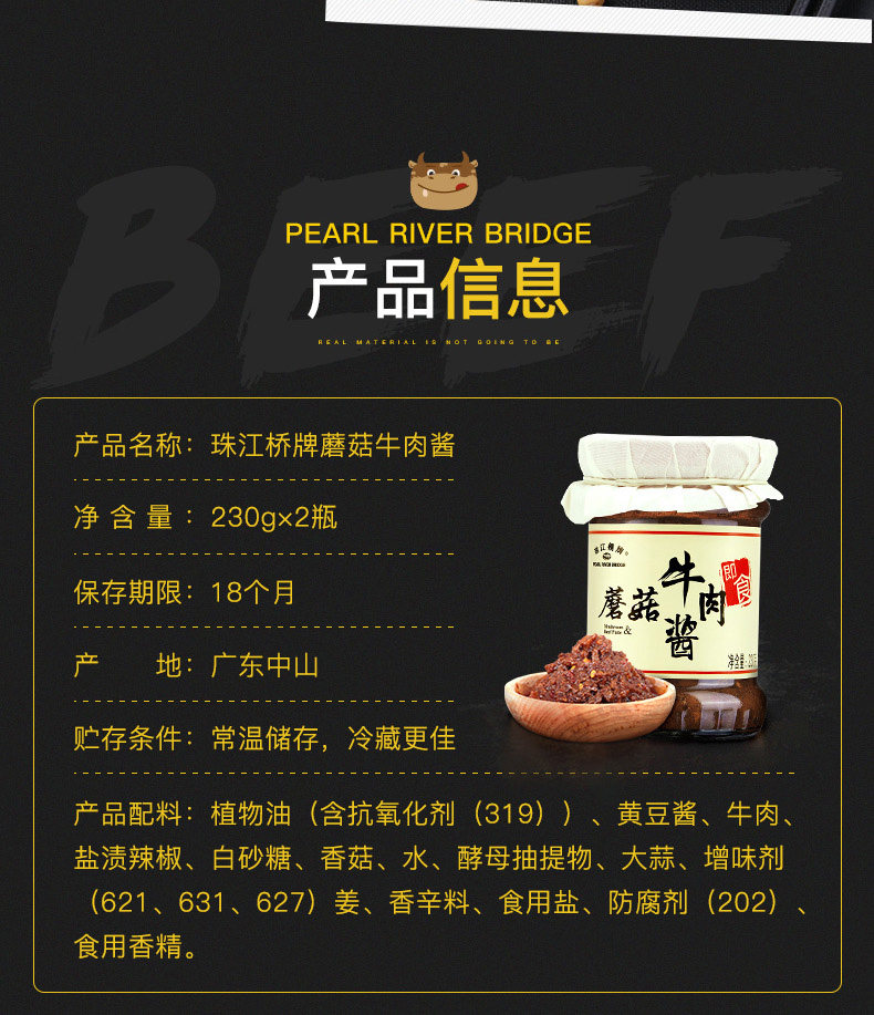 珠江桥牌-香菇牛肉酱玻璃瓶装230g*2