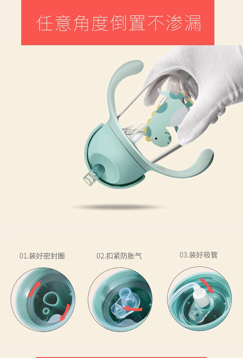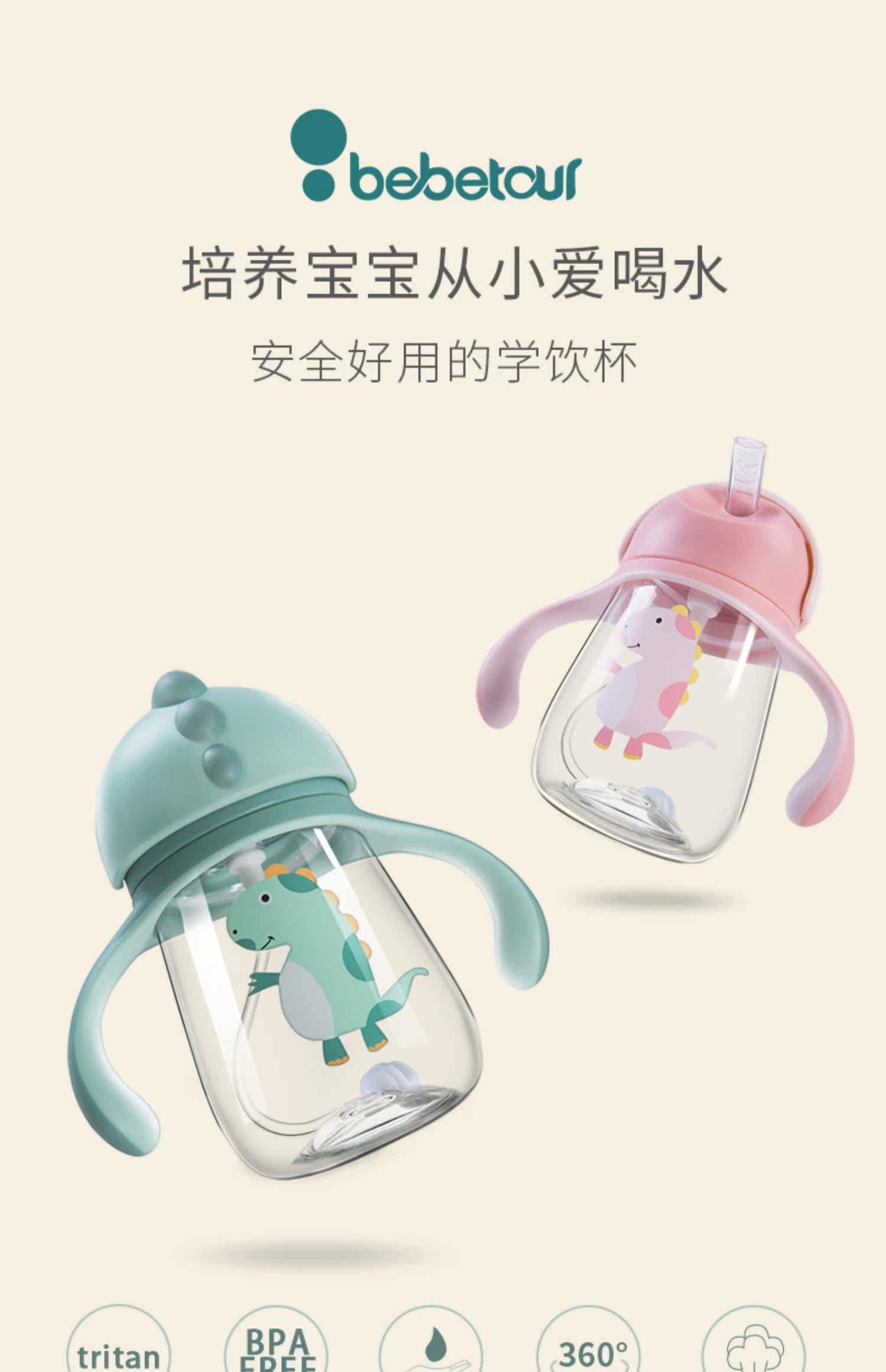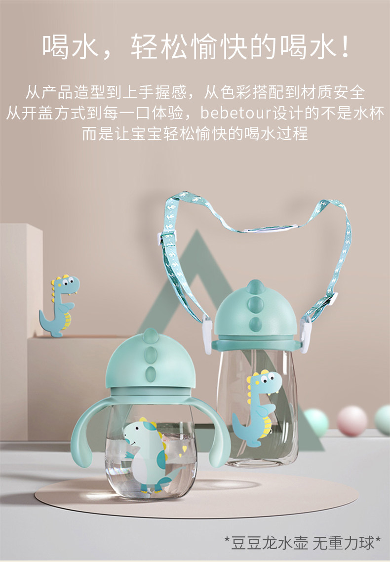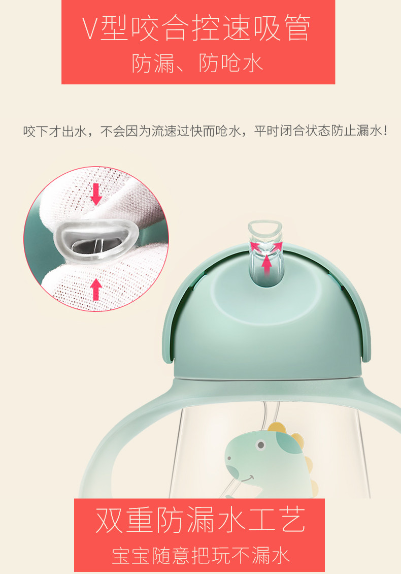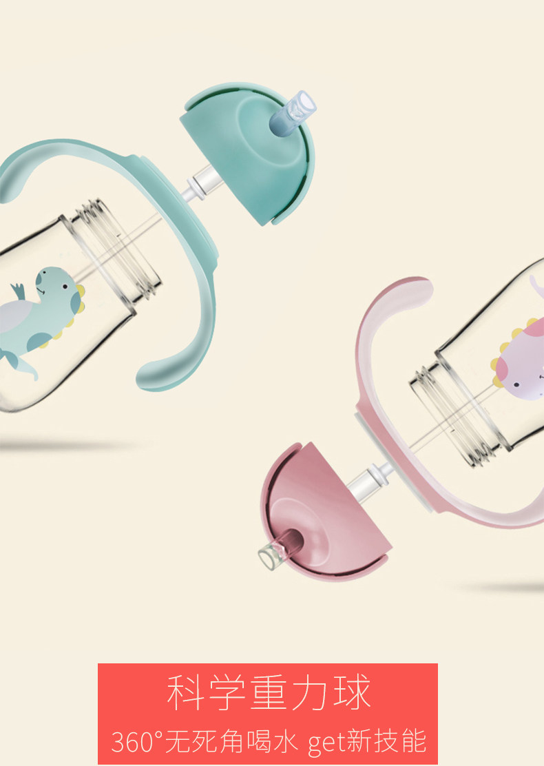 tritan安全材质,不含双酚A,防摔防漏,耐高温,专利v型咬合吸管,手柄背带设计,360度重力球,训练宝宝喝水,萌萌外形很可爱【赠运费险】