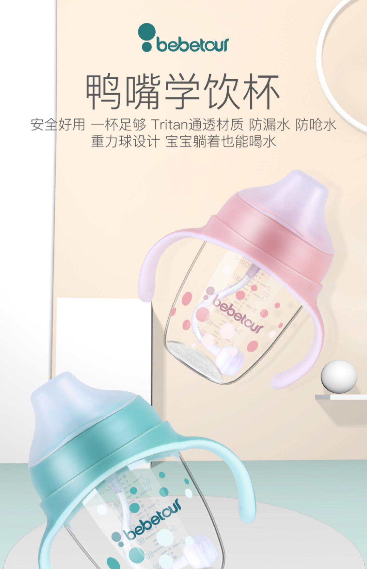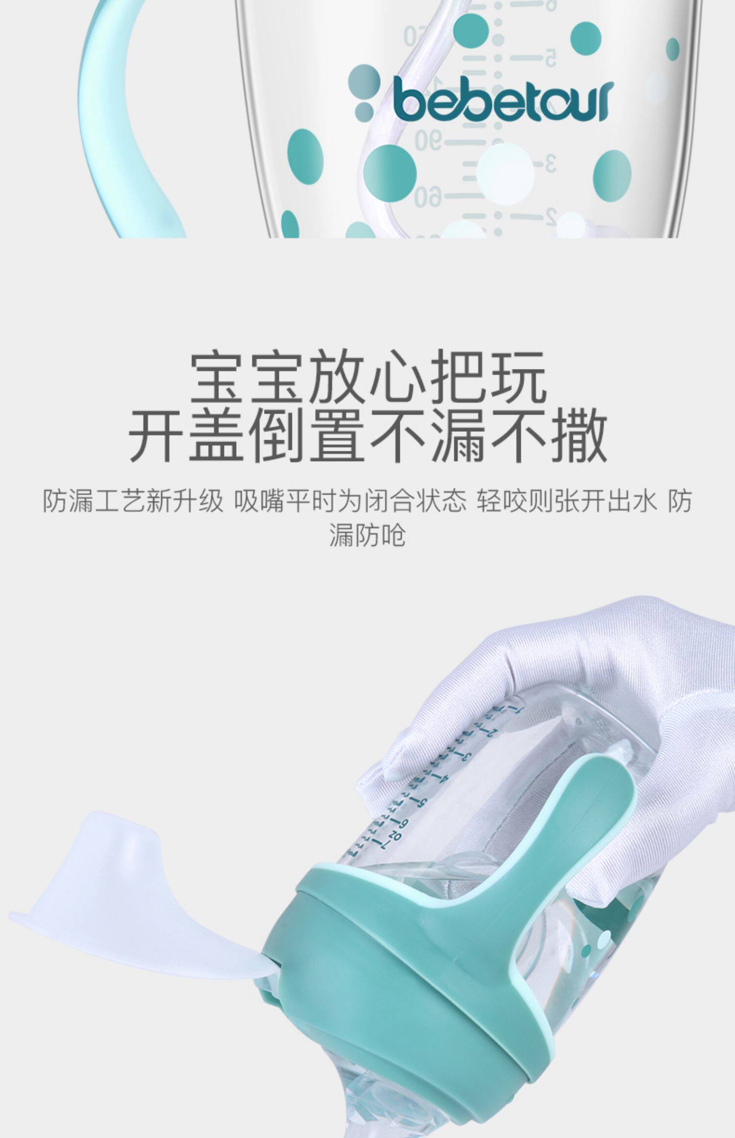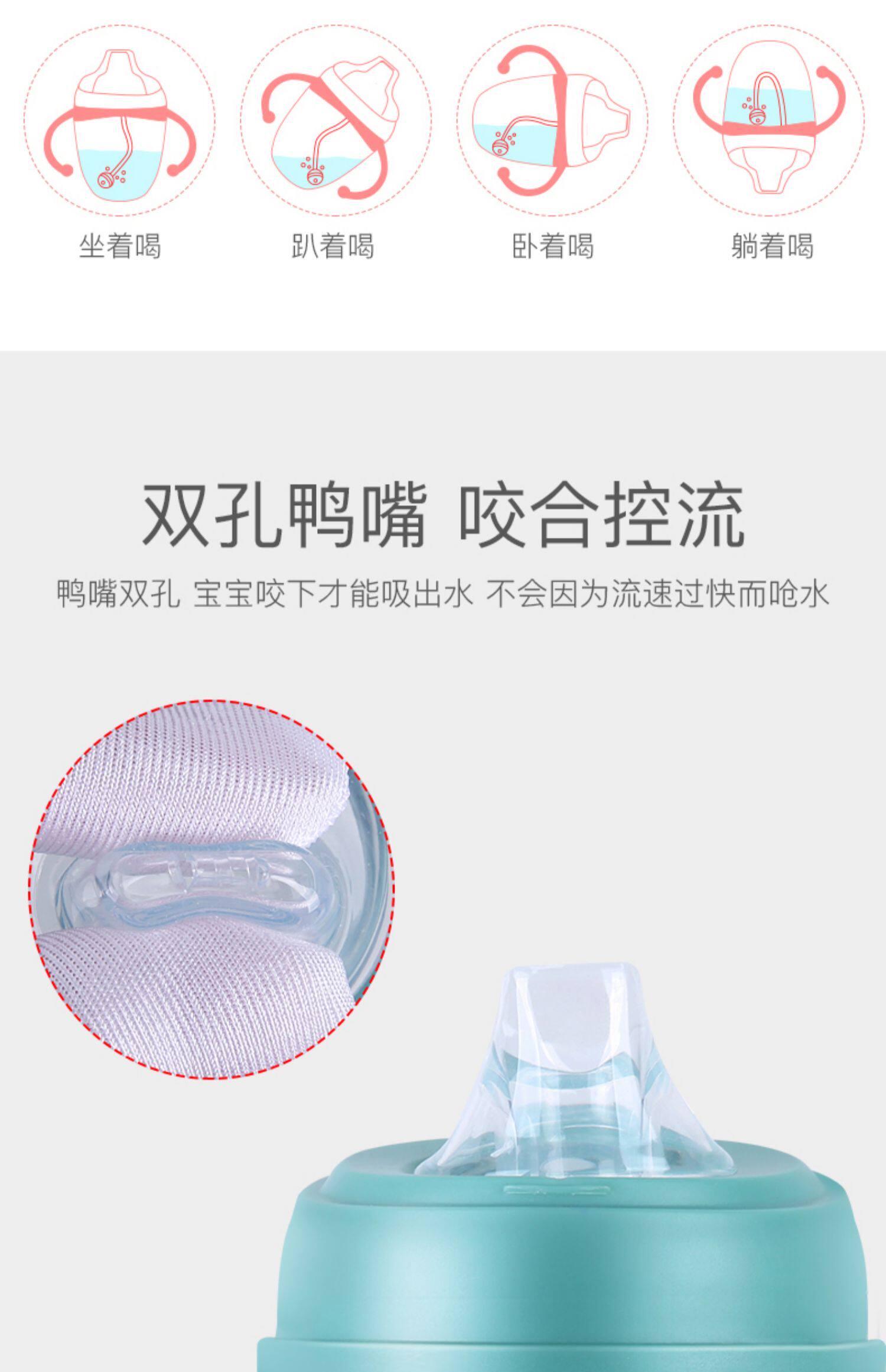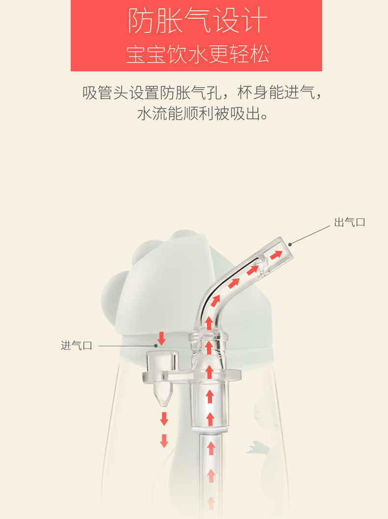 tritan安全材质,不含双酚A,防摔防漏,耐高温,专利v型咬合吸管,手柄背带设计,360度重力球,训练宝宝喝水,萌萌外形很可爱【赠运费险】