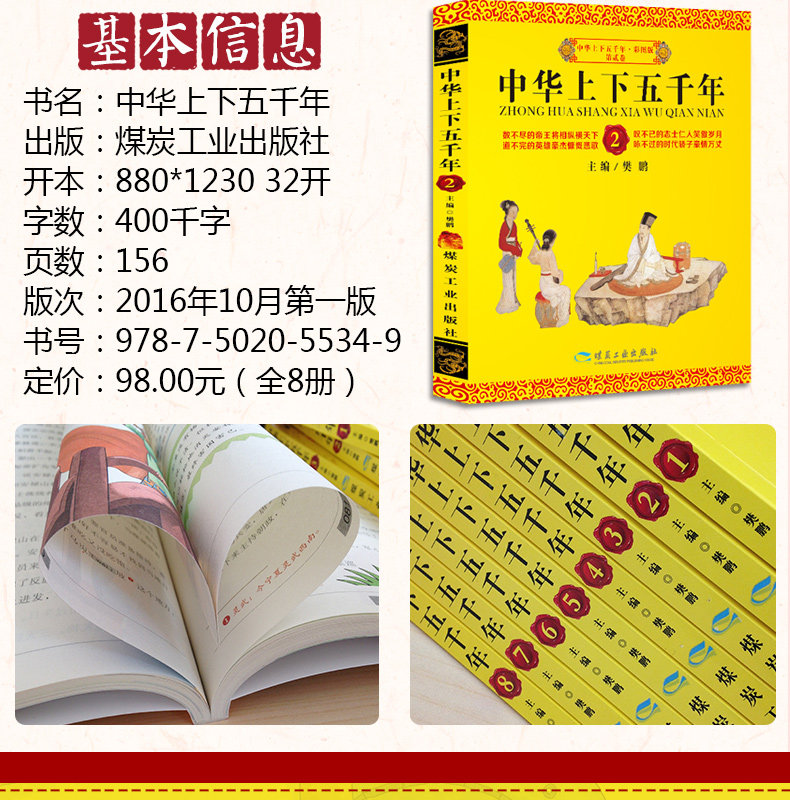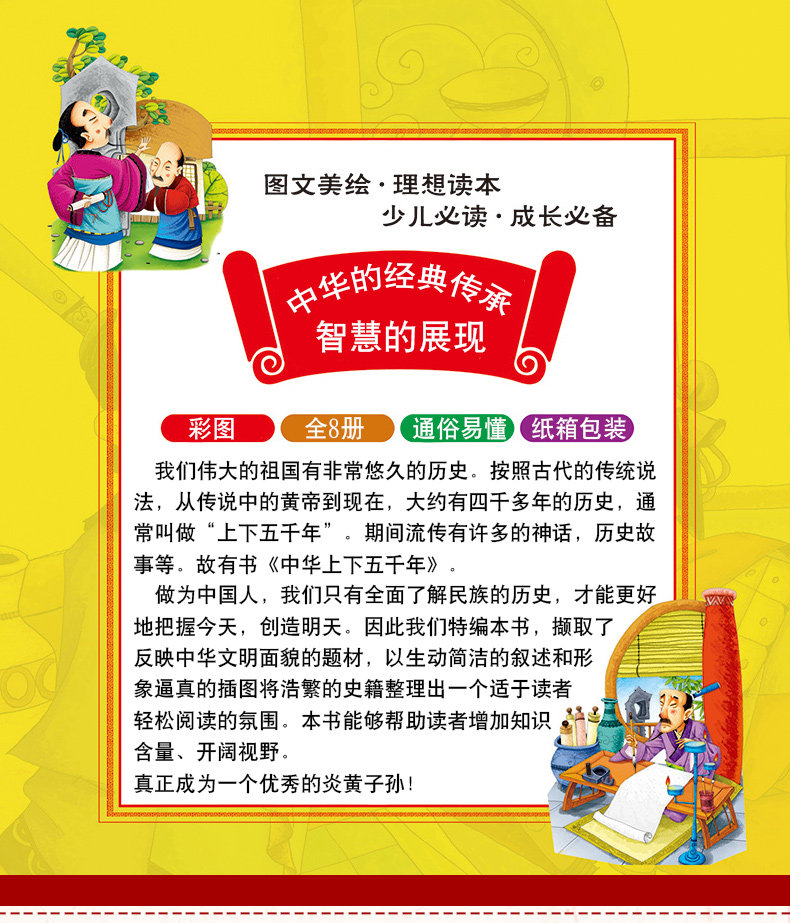 【全8册】大纸箱包装!正版中华上下五千年彩图版,小学生青少年版课外书必读,疑难点有标注释义,五千年的历史文化,蕴含丰富的知识和道理,经典传世佳作【给孩子选品质好内容靠谱的】156页/册