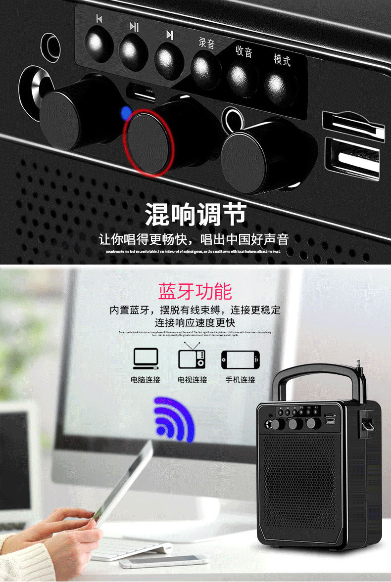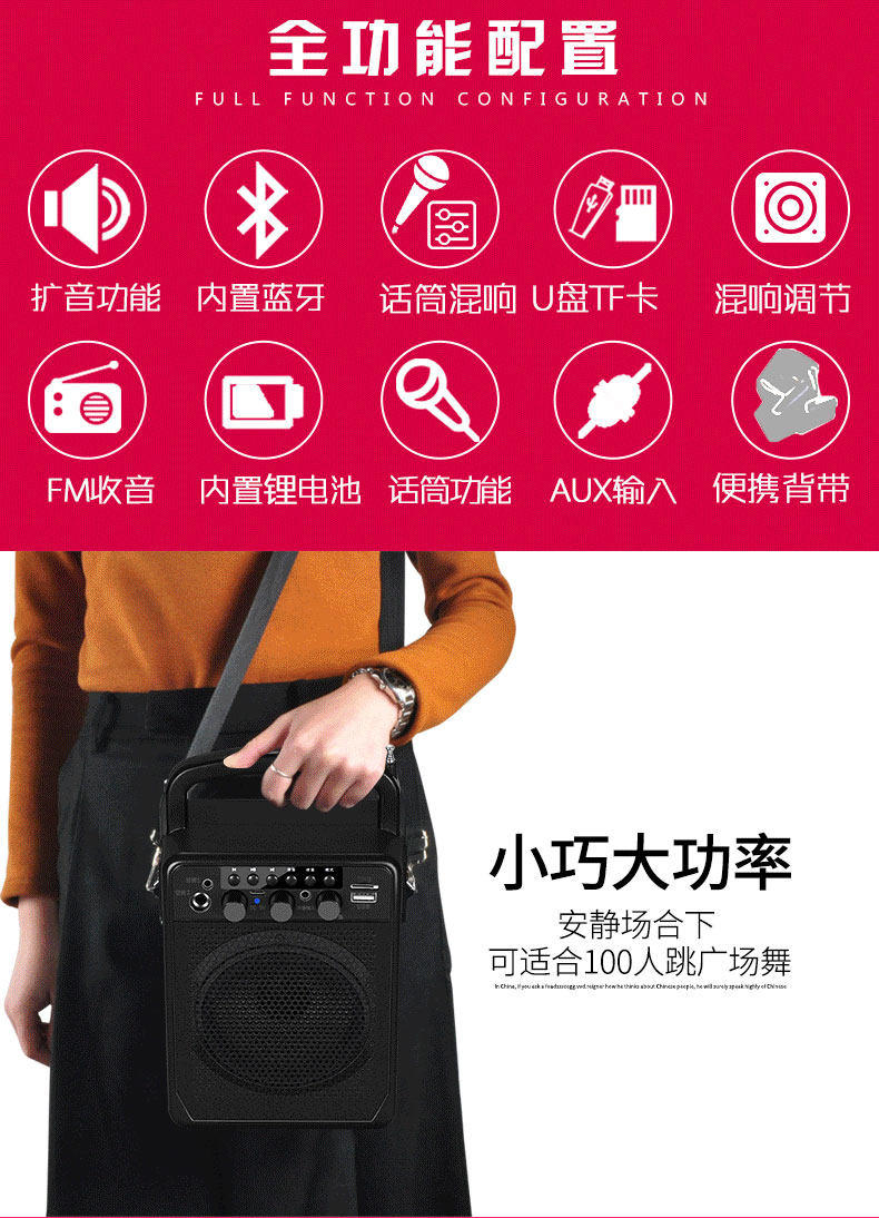 收藏送三件套,内置锂电池,便携携带,独立混响调节,收款播报,全功能配置,胜任多种场景,音量大,覆盖广,老人小孩都能操作!【赠运费险】
