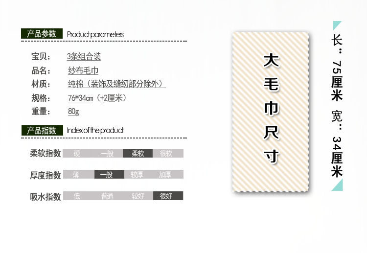 四层纱布大毛巾,优质面料,柔软舒适,吸水性好,精美做工,透气不掉毛,纤维毛巾,精美缎档,居家必备!