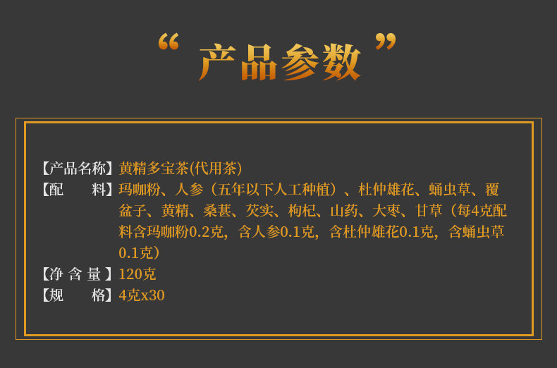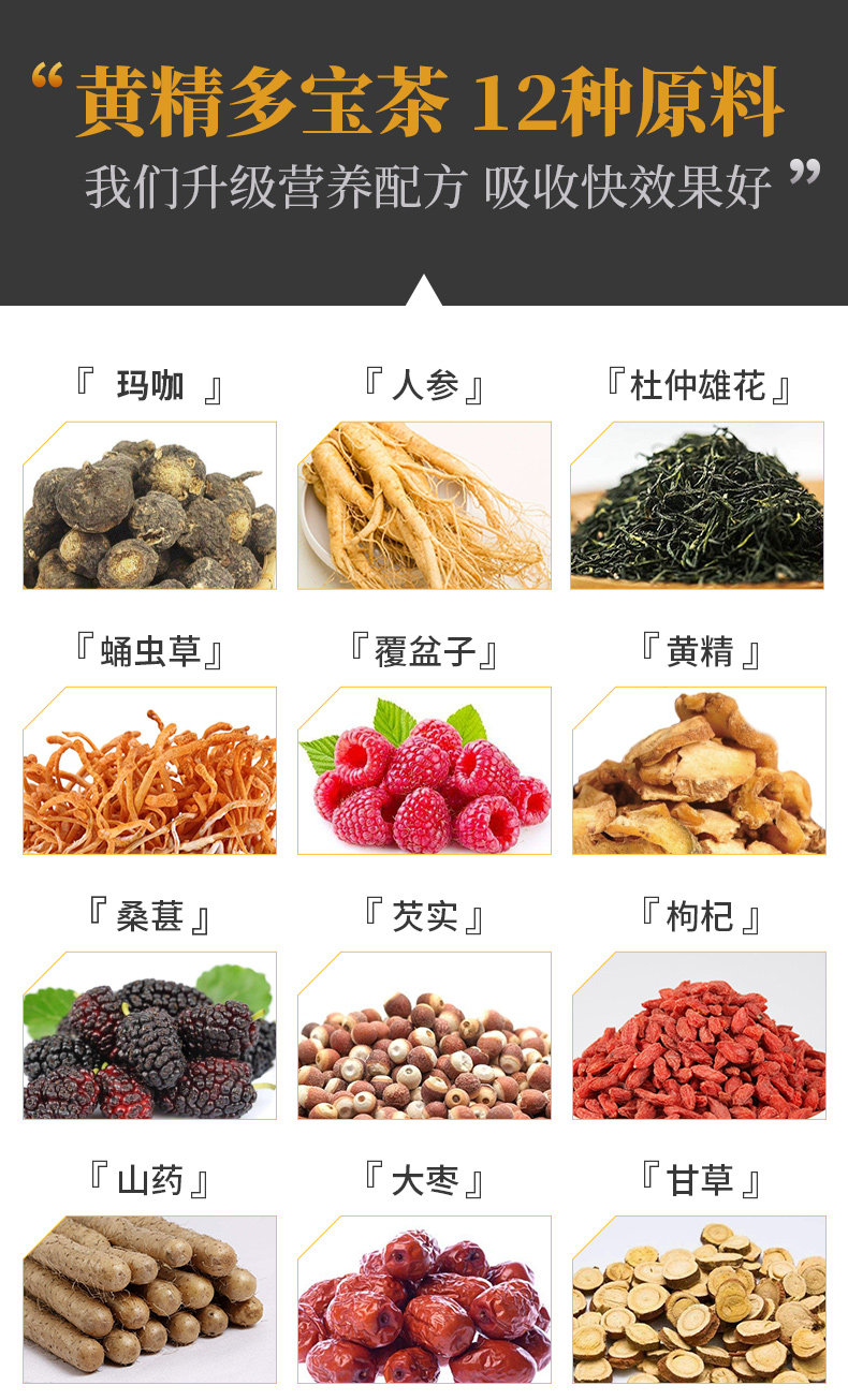 精选优质食材,玛咖粉、人参、黄精等,每天泡一泡,元气满满,像回到了18岁~男人的养生茶,不要想就是抢!
