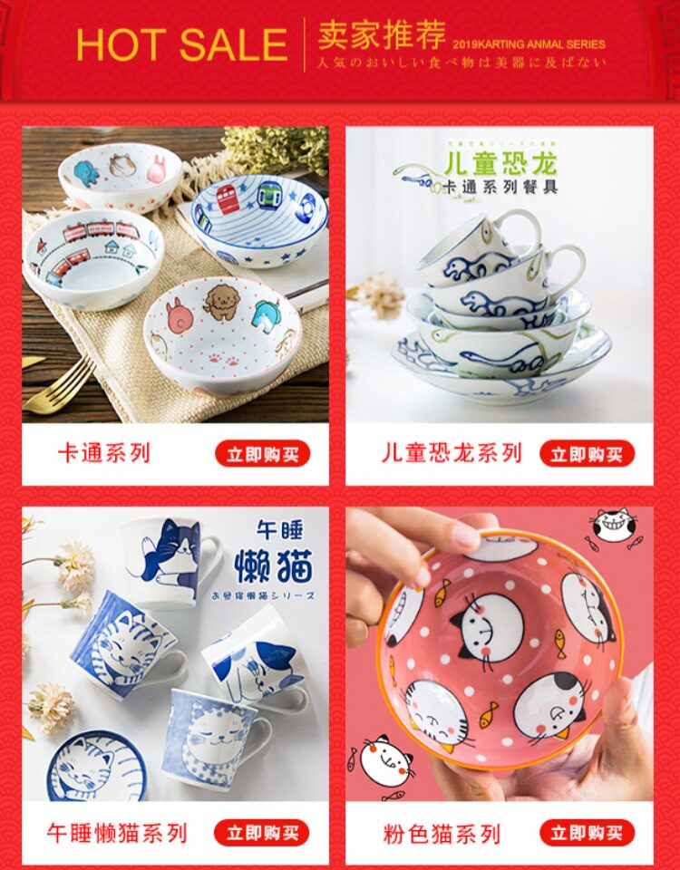 日本进口卡通陶瓷碗餐具碗可微波炉