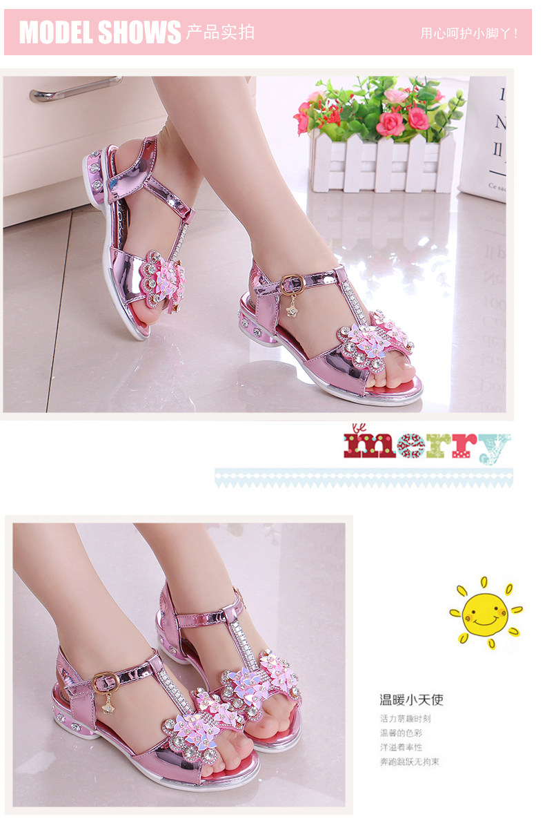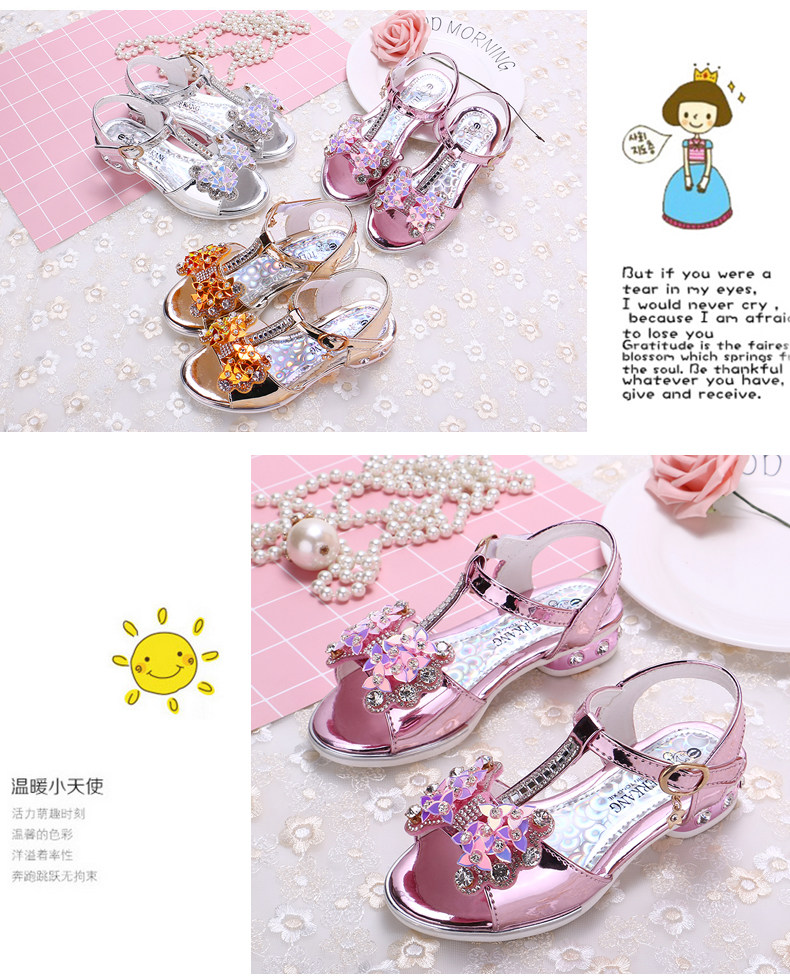 新款韩版夏季公主鞋,中大童小学生都可穿哦,水钻儿童高跟鞋软底,优雅时尚水钻凉鞋,赠运费险!宝妈赶紧下手啦!