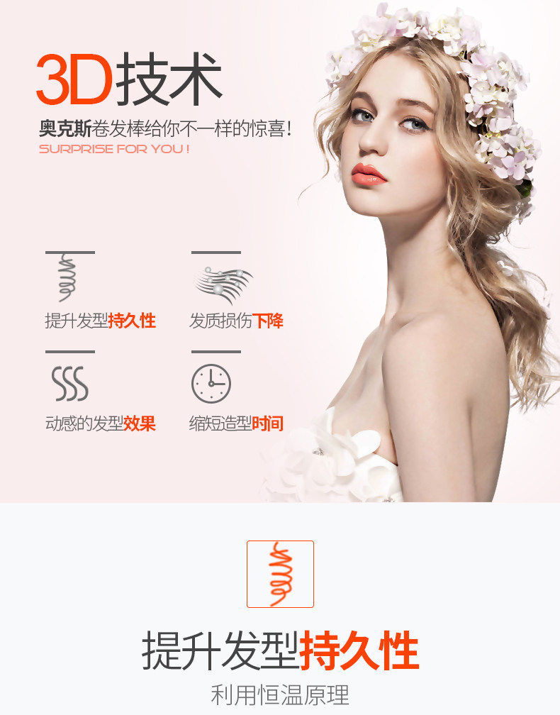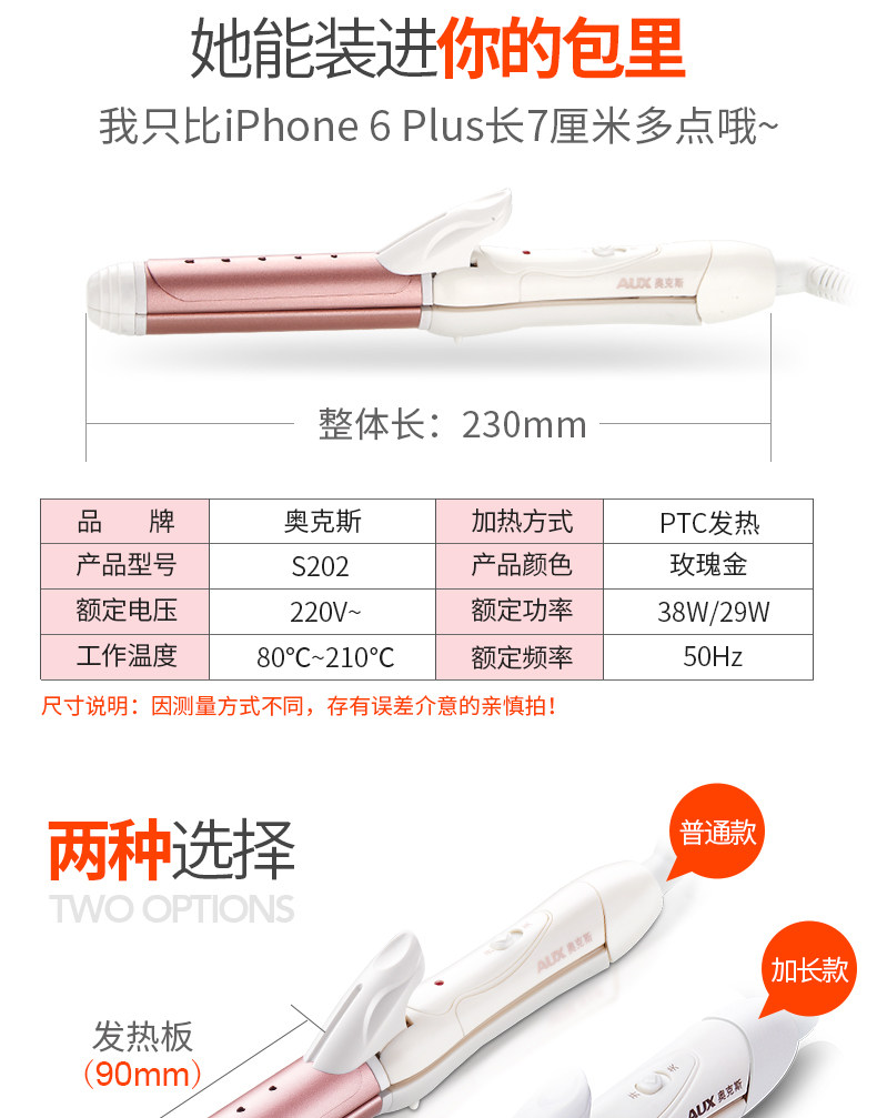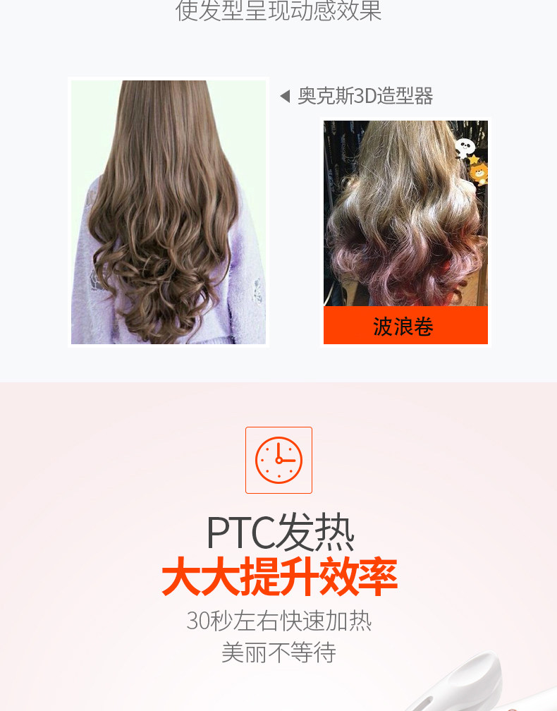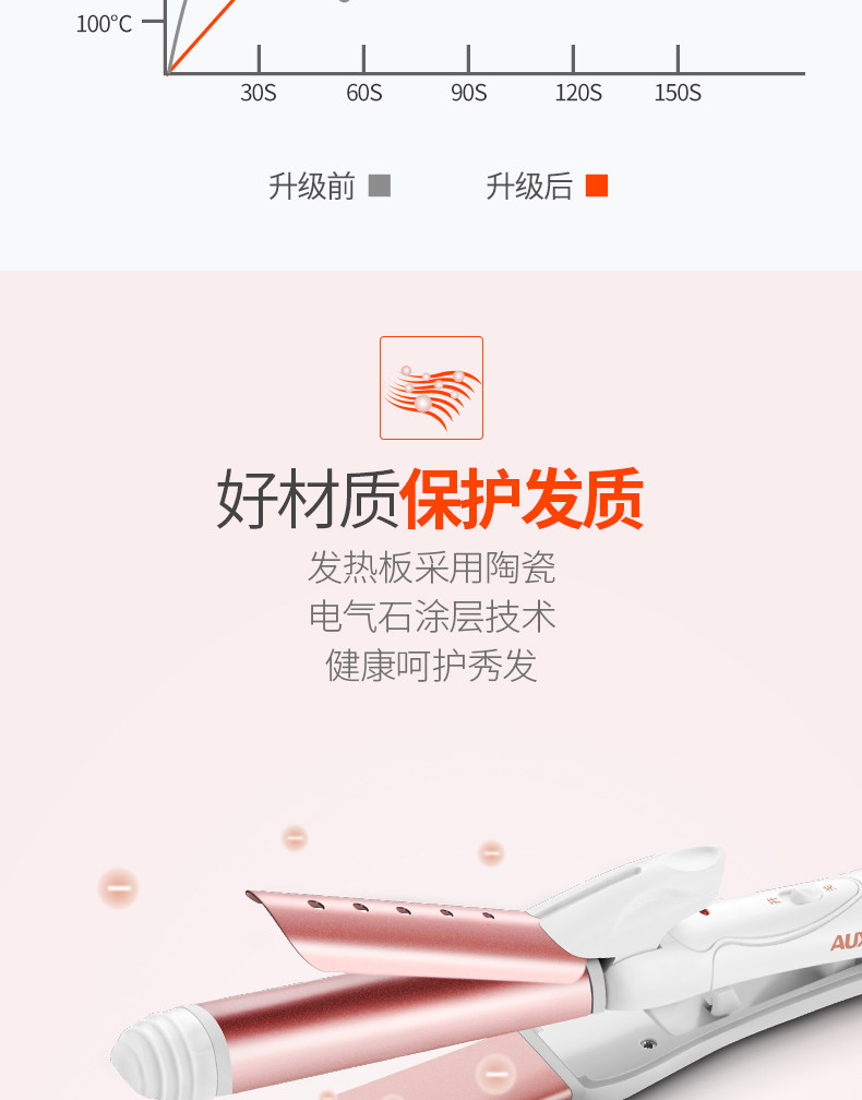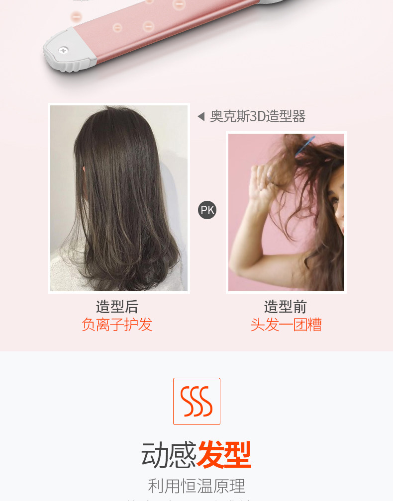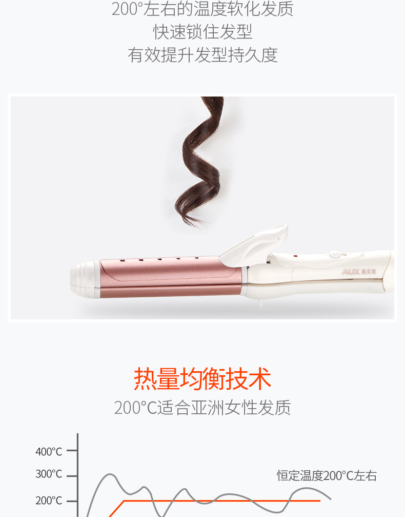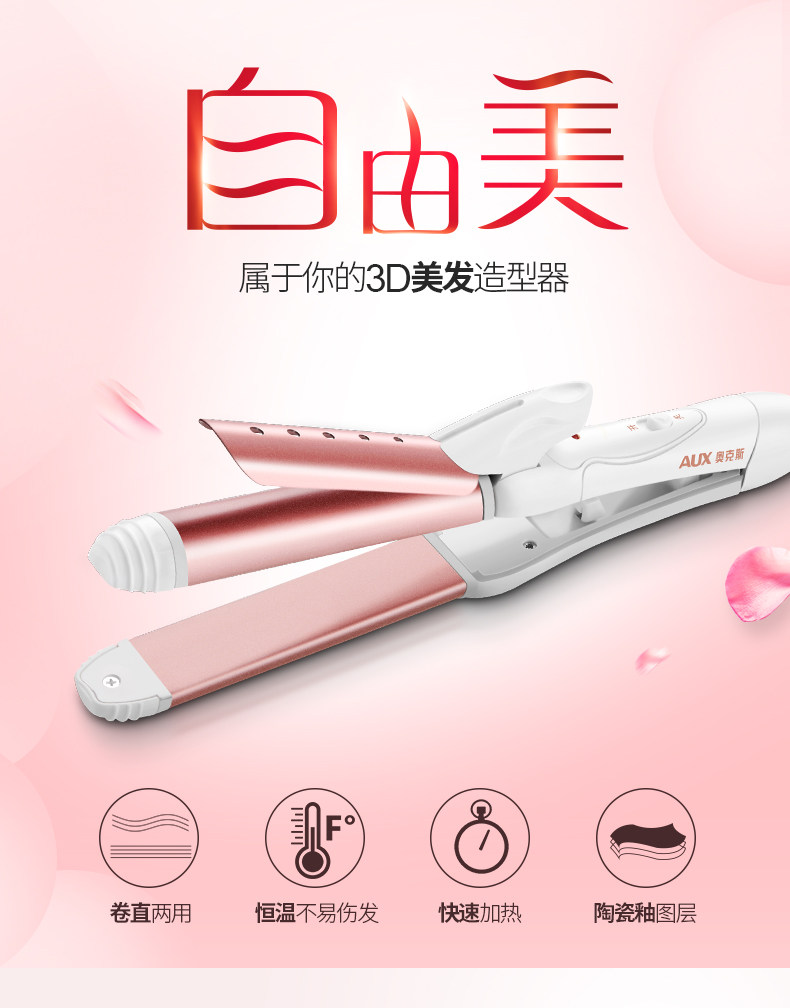 【奥克斯】卷直两用,恒温不易伤发,快速加热,陶瓷釉图层,3D技术,提升发型持久性,降低发质损伤,健康呵护秀发,奥克斯给您不一样的惊喜哦。