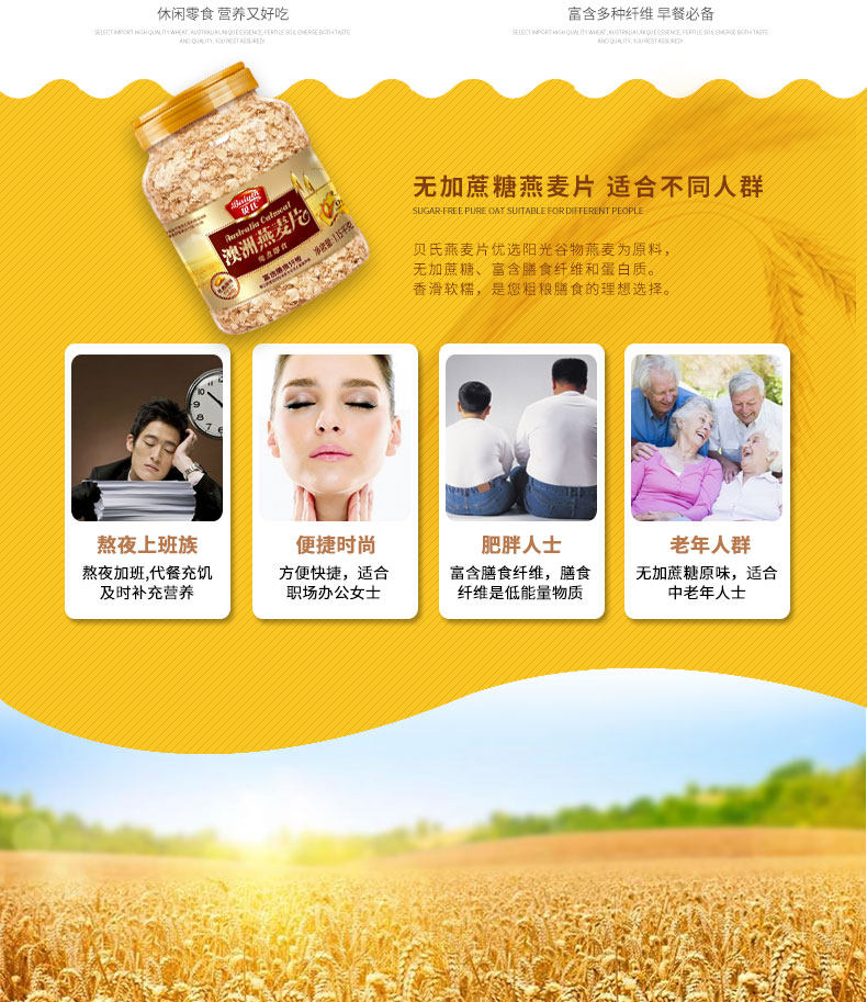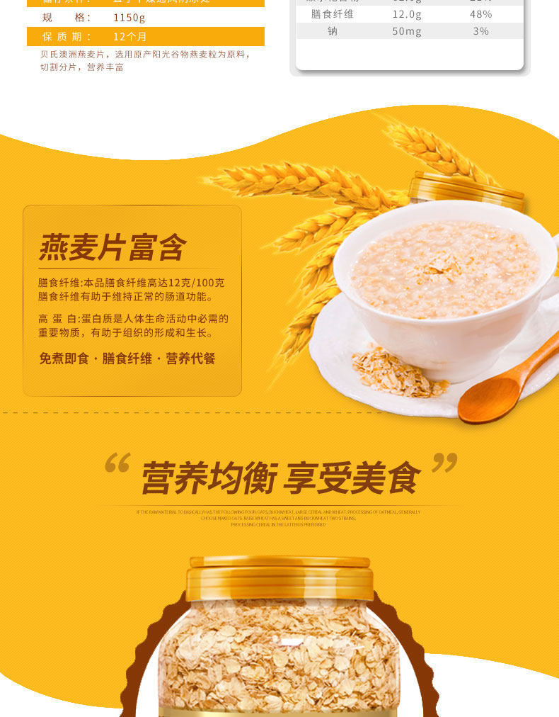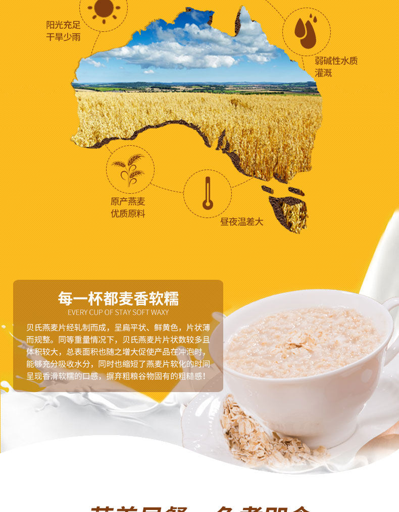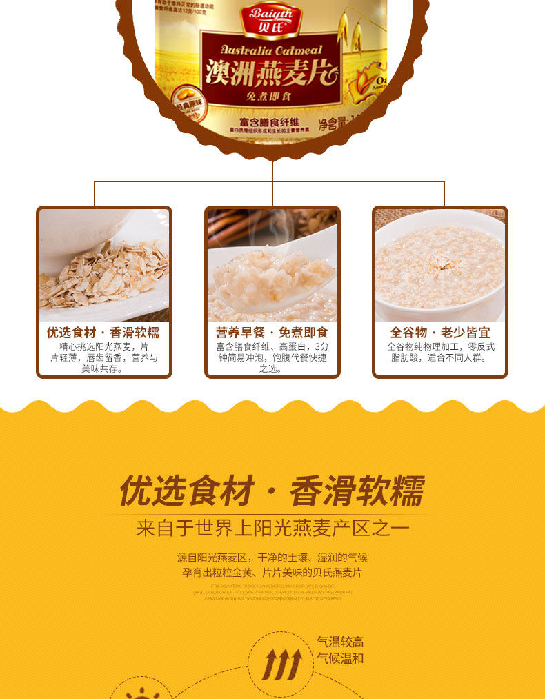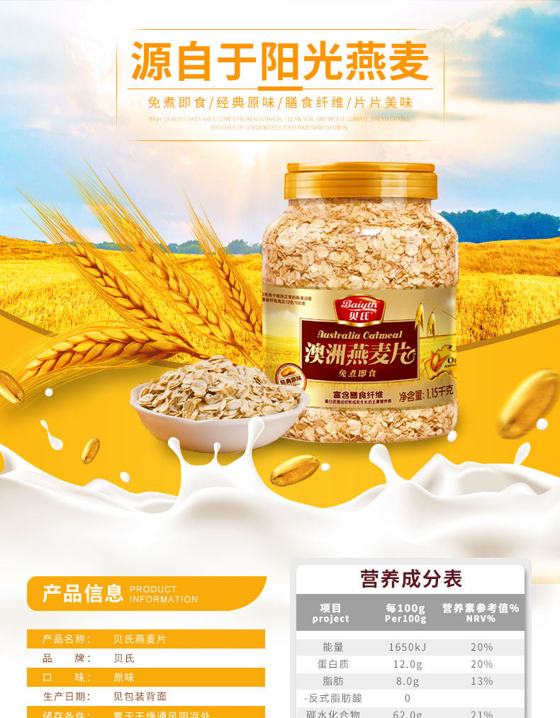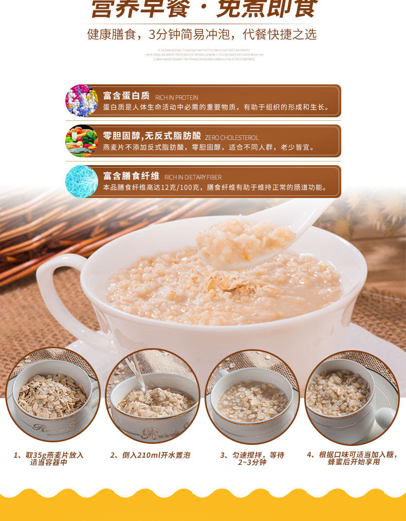 贝氏燕麦片,20年品牌,值得信赖。经典原味,免煮即食,膳食纤维,营养食品,口感十足,多口味选择,大人小孩都能喝!