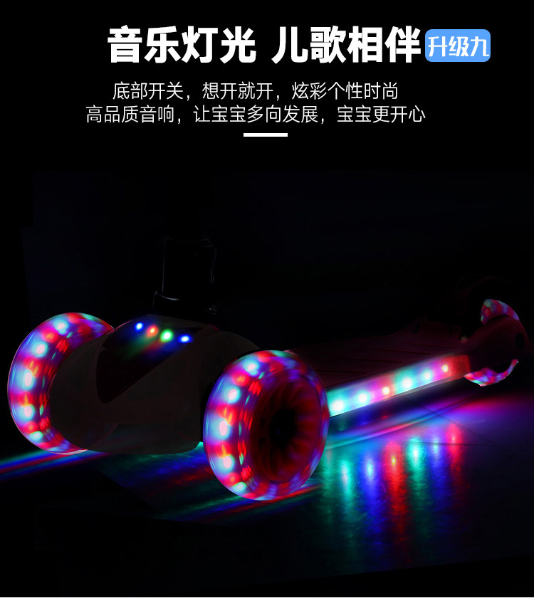 瑞士儿童滑板车自行车闪光折叠跑马灯音乐