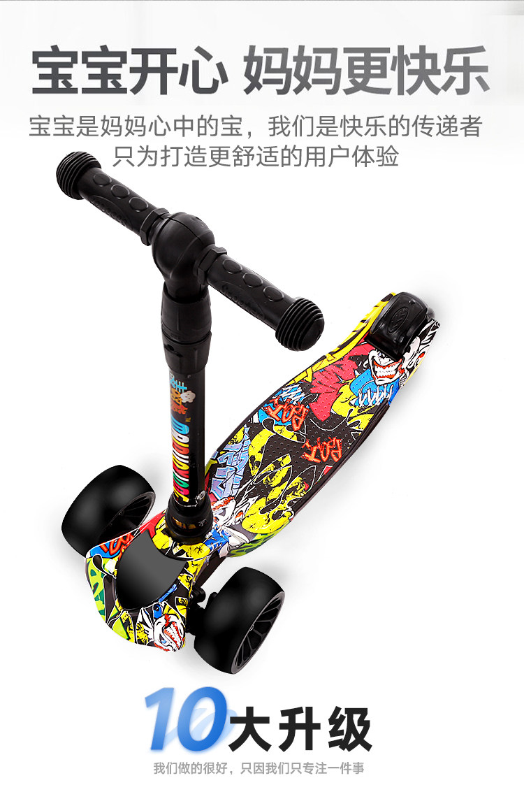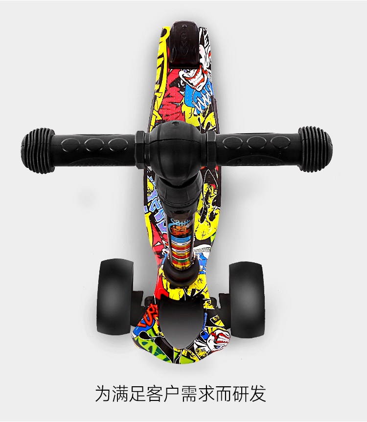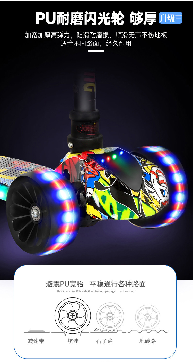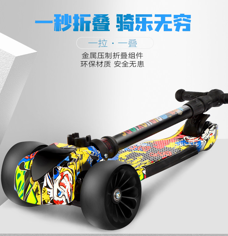 新款瑞士涂鸦四轮闪光儿童滑板车折叠踏板车,时尚涂鸦外观,一秒折叠升降,四轮电磁闪光,安全又时尚,宝妈放心,孩子玩的开心。【赠运费险】