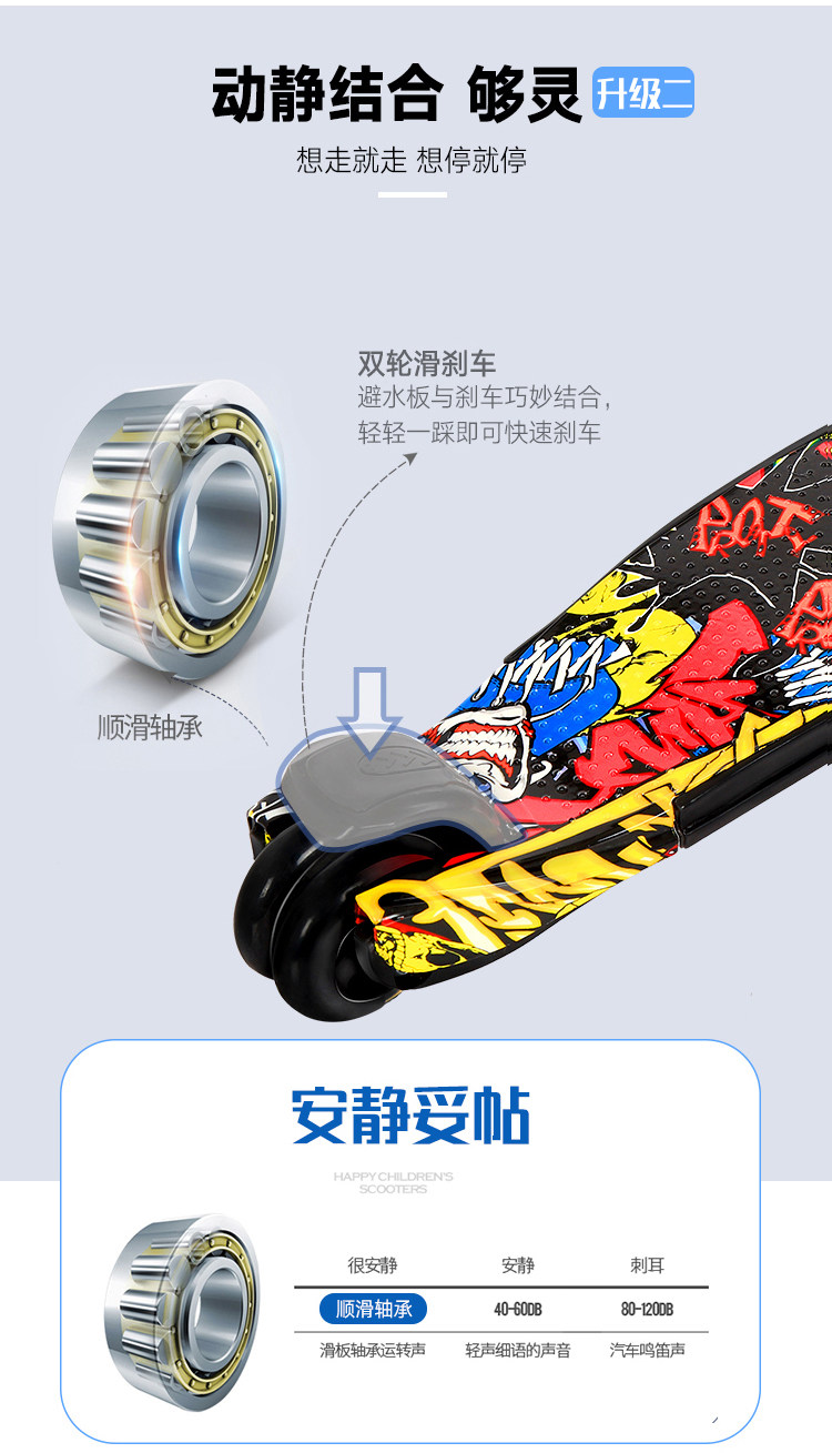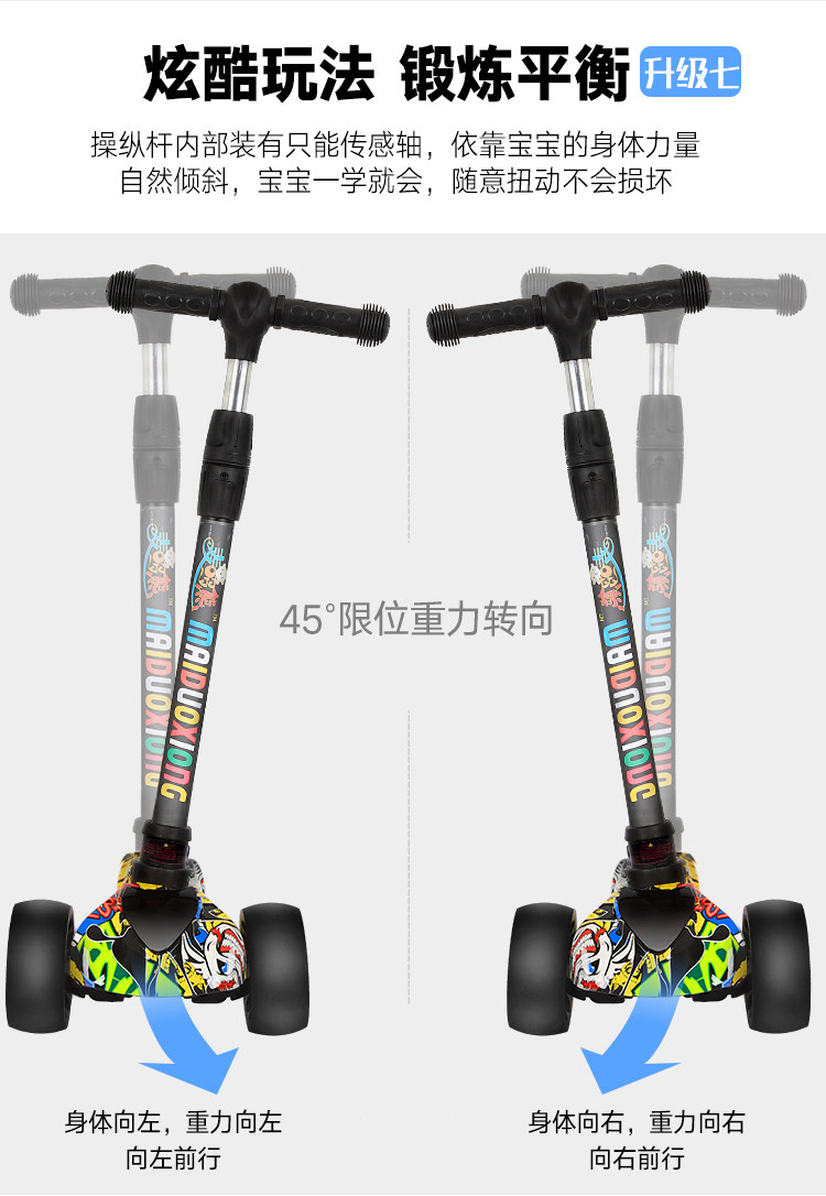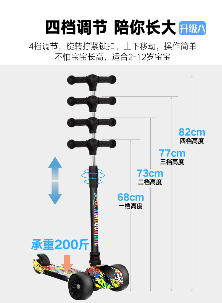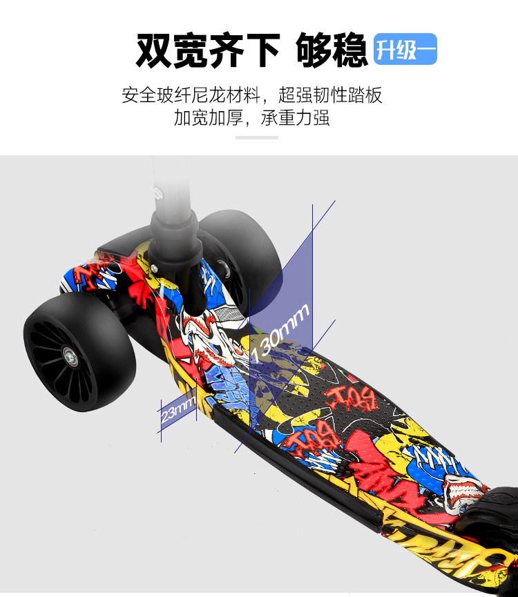 新款瑞士涂鸦四轮闪光儿童滑板车折叠踏板车,时尚涂鸦外观,一秒折叠升降,四轮电磁闪光,安全又时尚,宝妈放心,孩子玩的开心。【赠运费险】