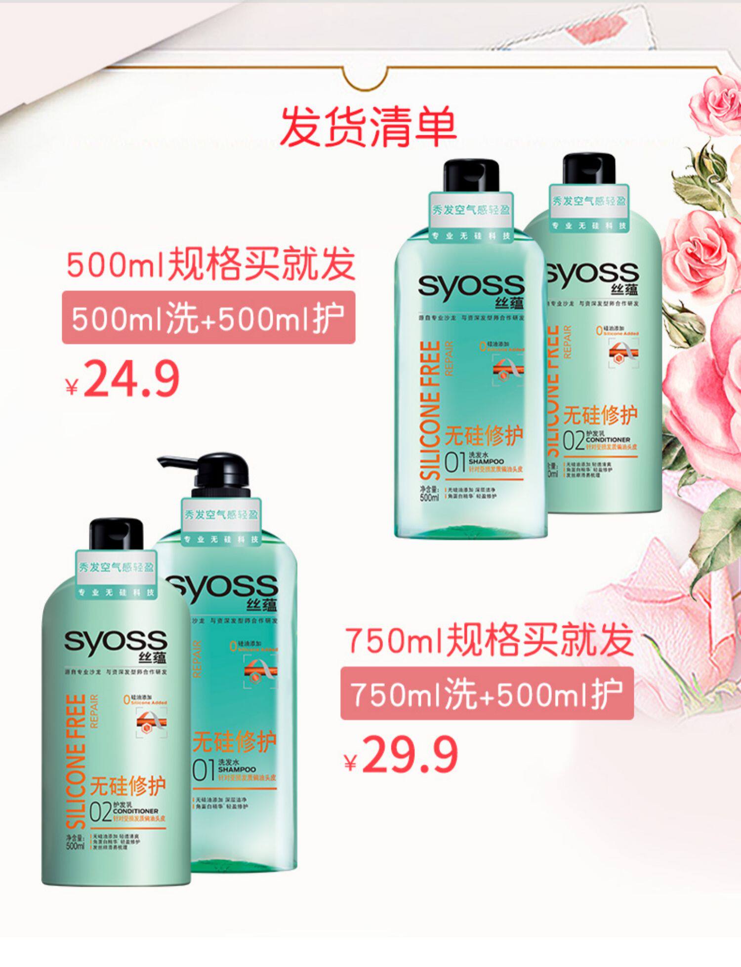 丝蕴无硅油洗护套装500ml*2瓶