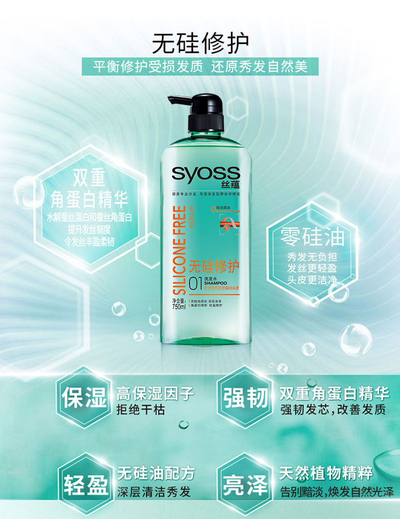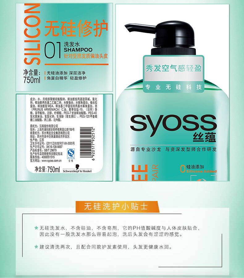 【买就送500ml护发素】宋茜代言,丝蕴官方授权,正品保证,超值2瓶装,萃取植物精华,无硅油洗发露,去屑顺发,水润养护,清爽护发,亚洲沙龙品质