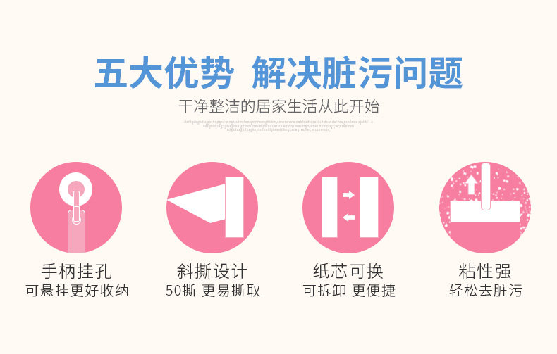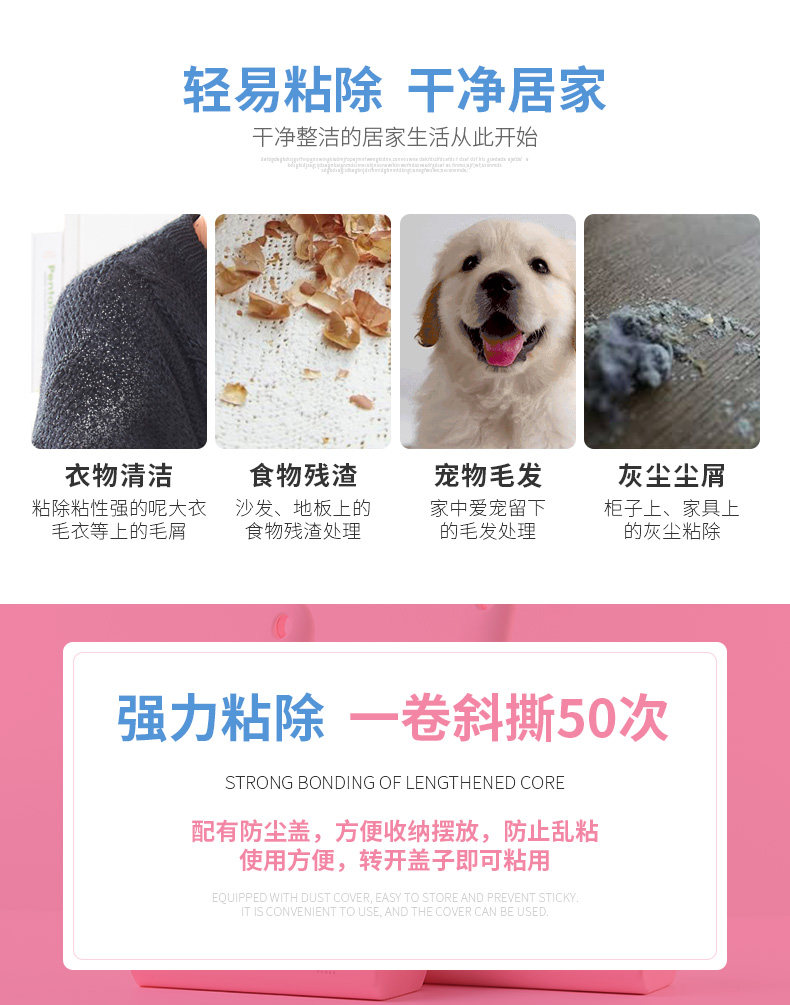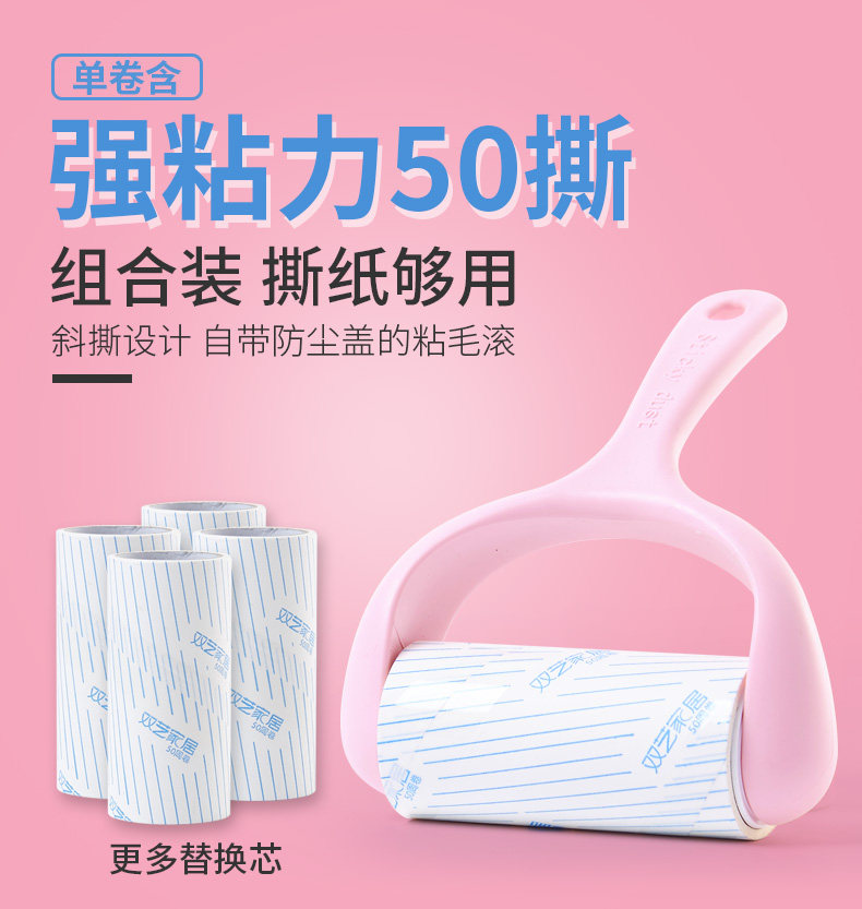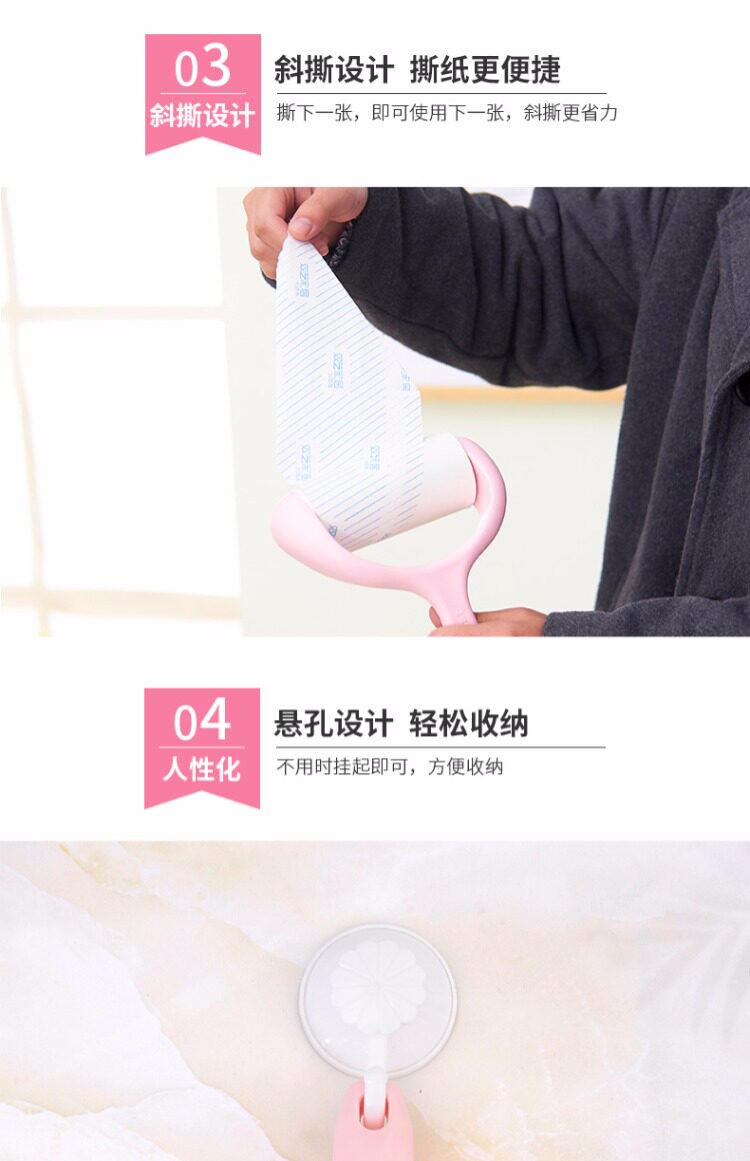 【超值1手柄+3卷纸芯】可撕式滚刷粘毛器,粘力强劲,易撕取,居家粘毛滚,烦恼一“杆”净,轻松粘毛,不伤衣物,您居家的好帮手~