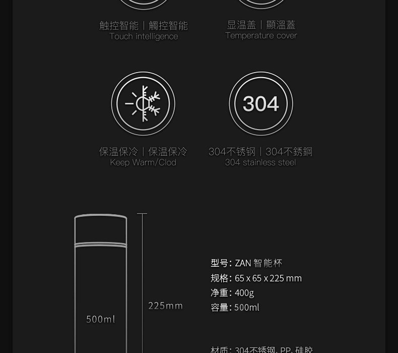 【ZAN智能保温杯】冷暖互动,关爱随芯,一款不仅给你温暖又可以给你冰爽的保温杯,内置强劲智能芯片,低功耗,强续航,让你随时了解水温~!