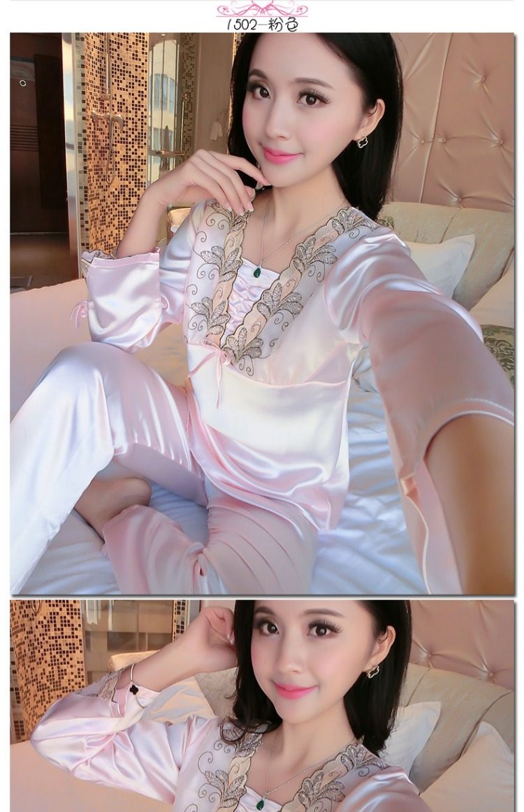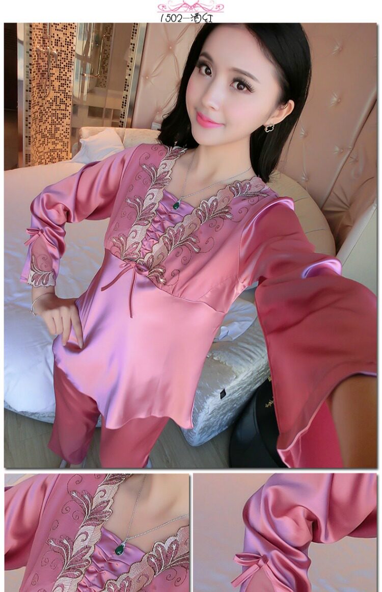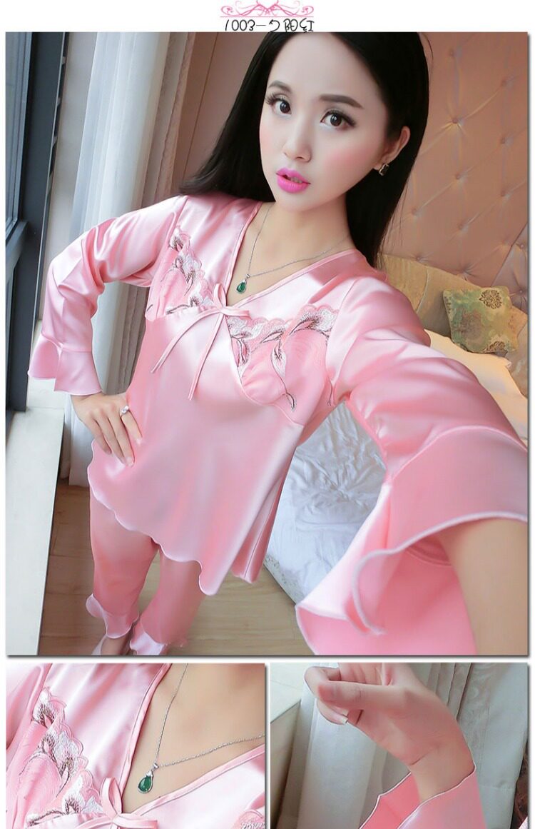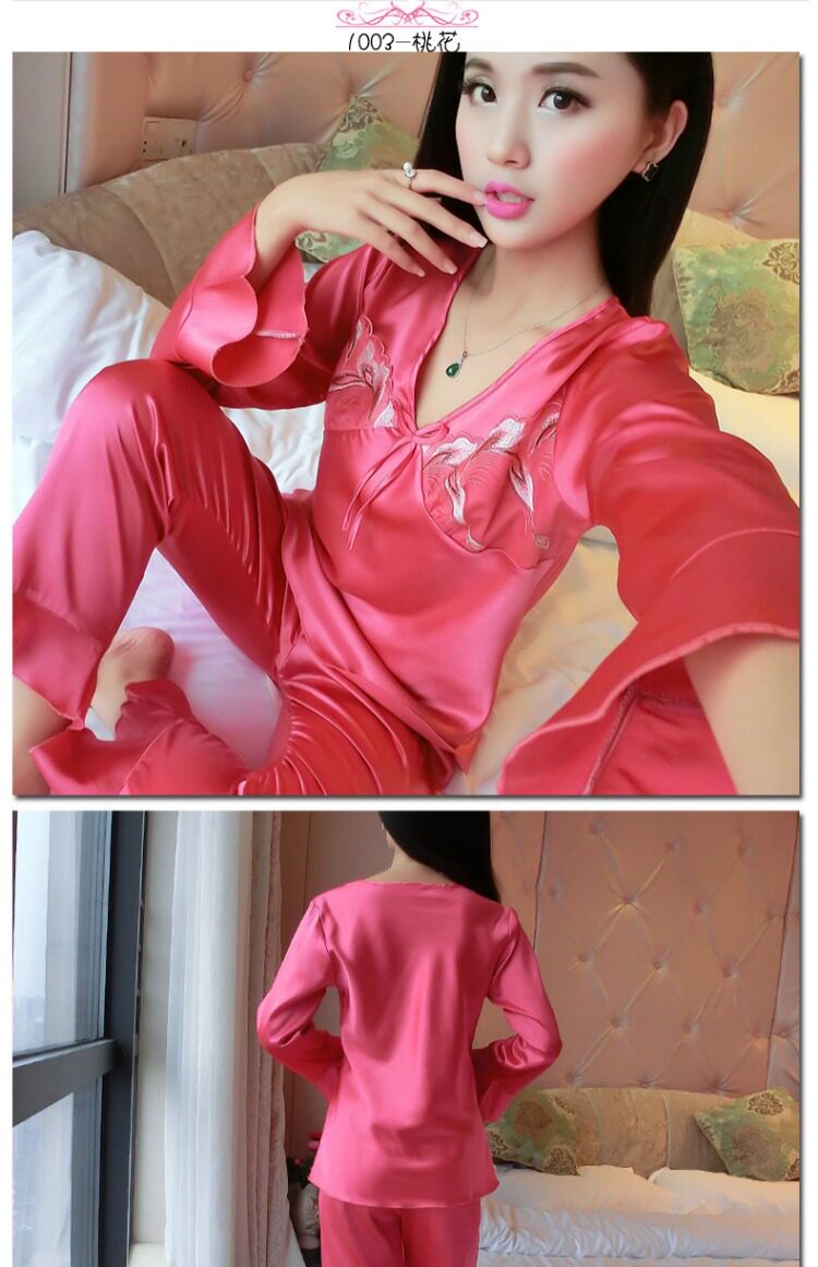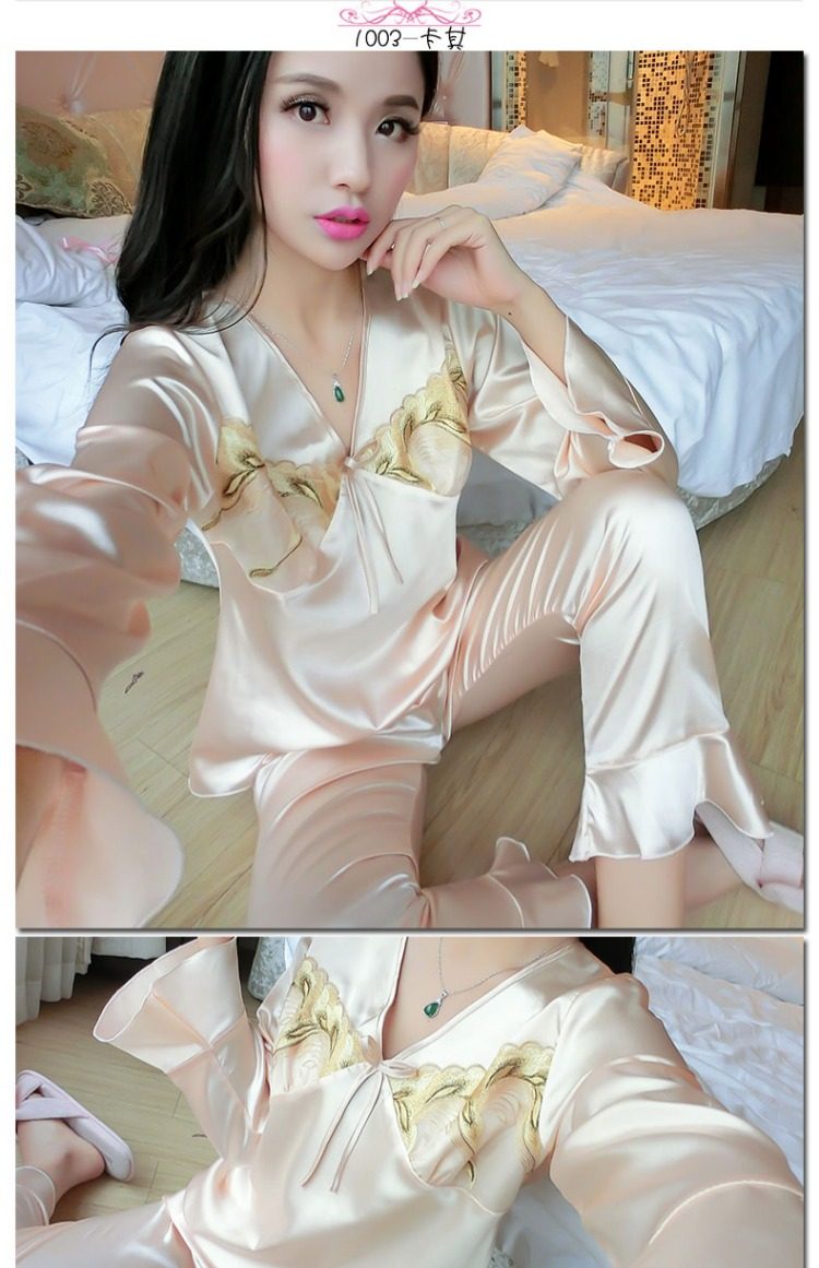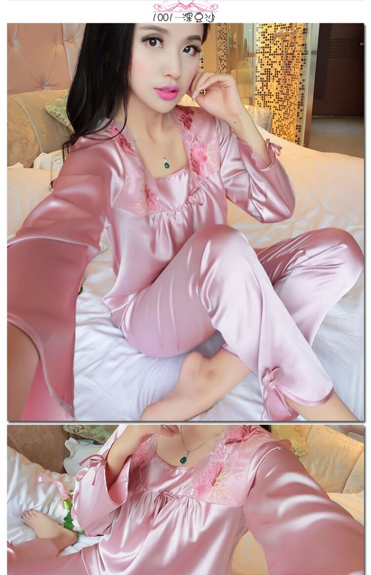 女夏季睡衣两件套薄款长袖冰丝性感真丝绸