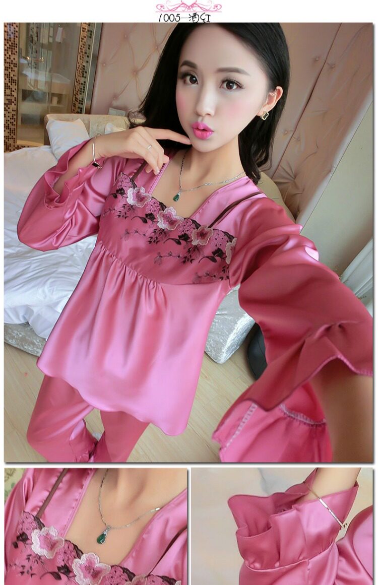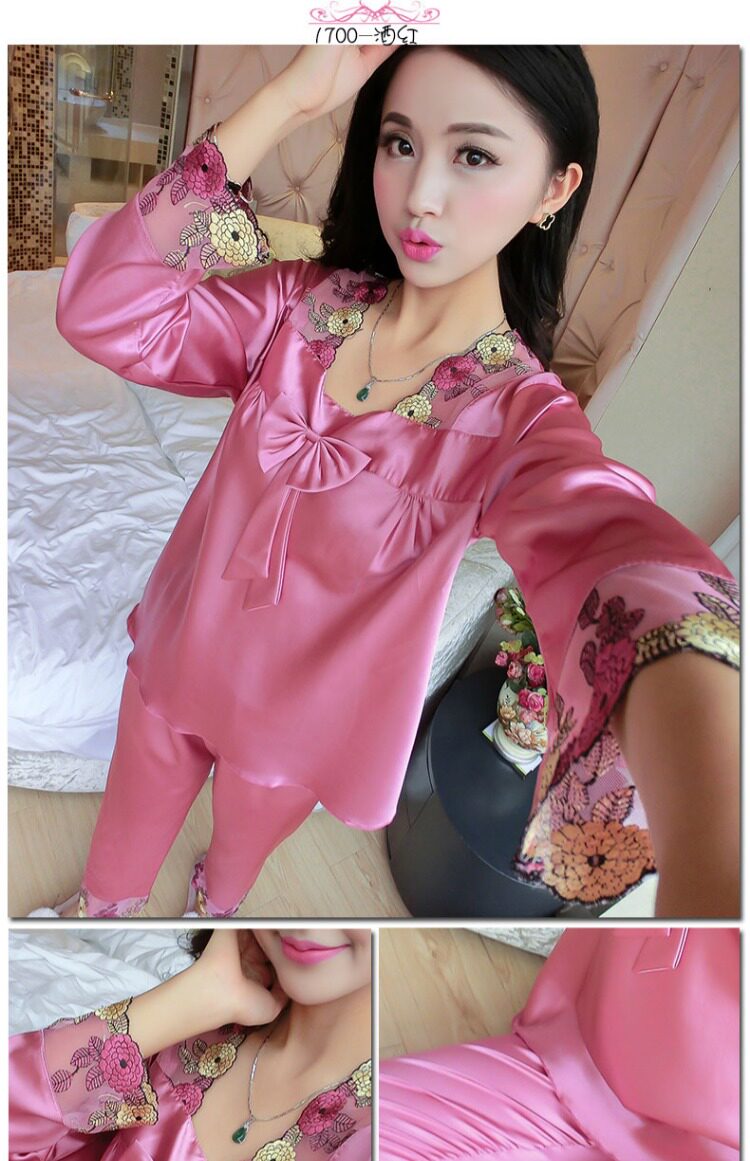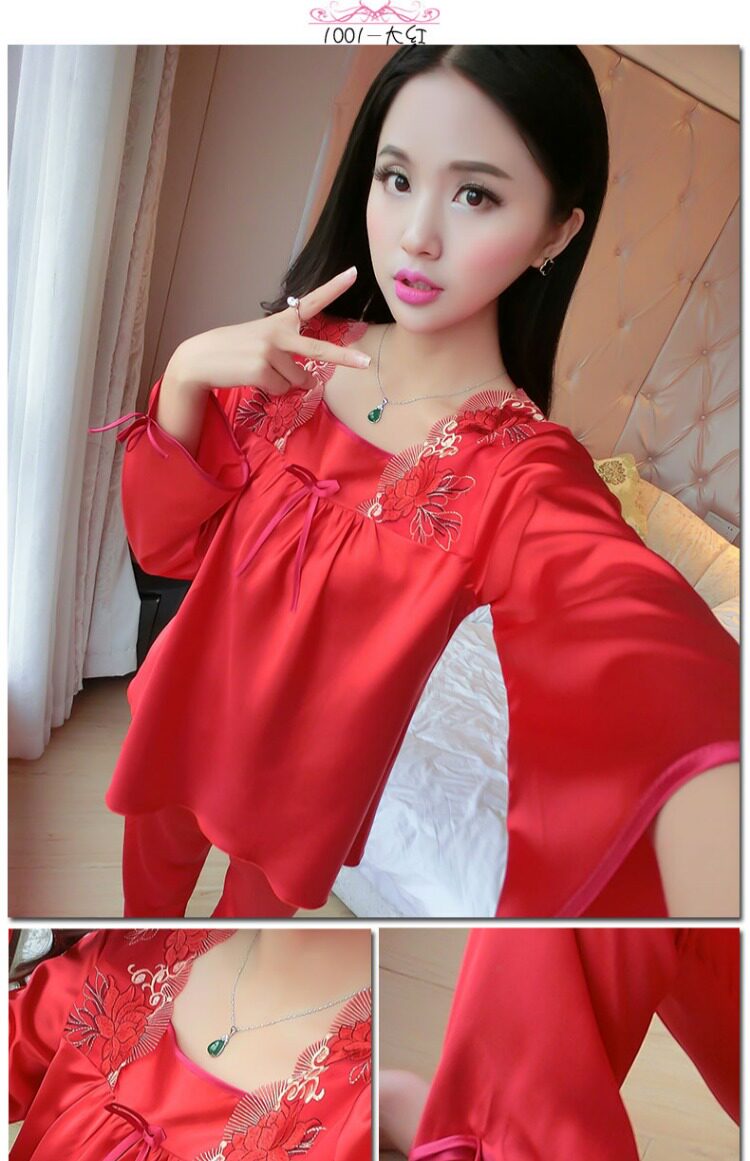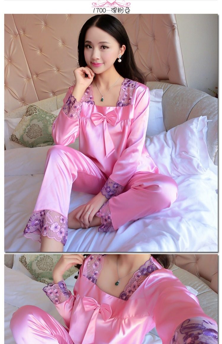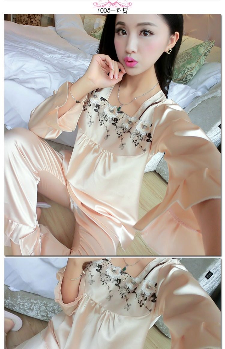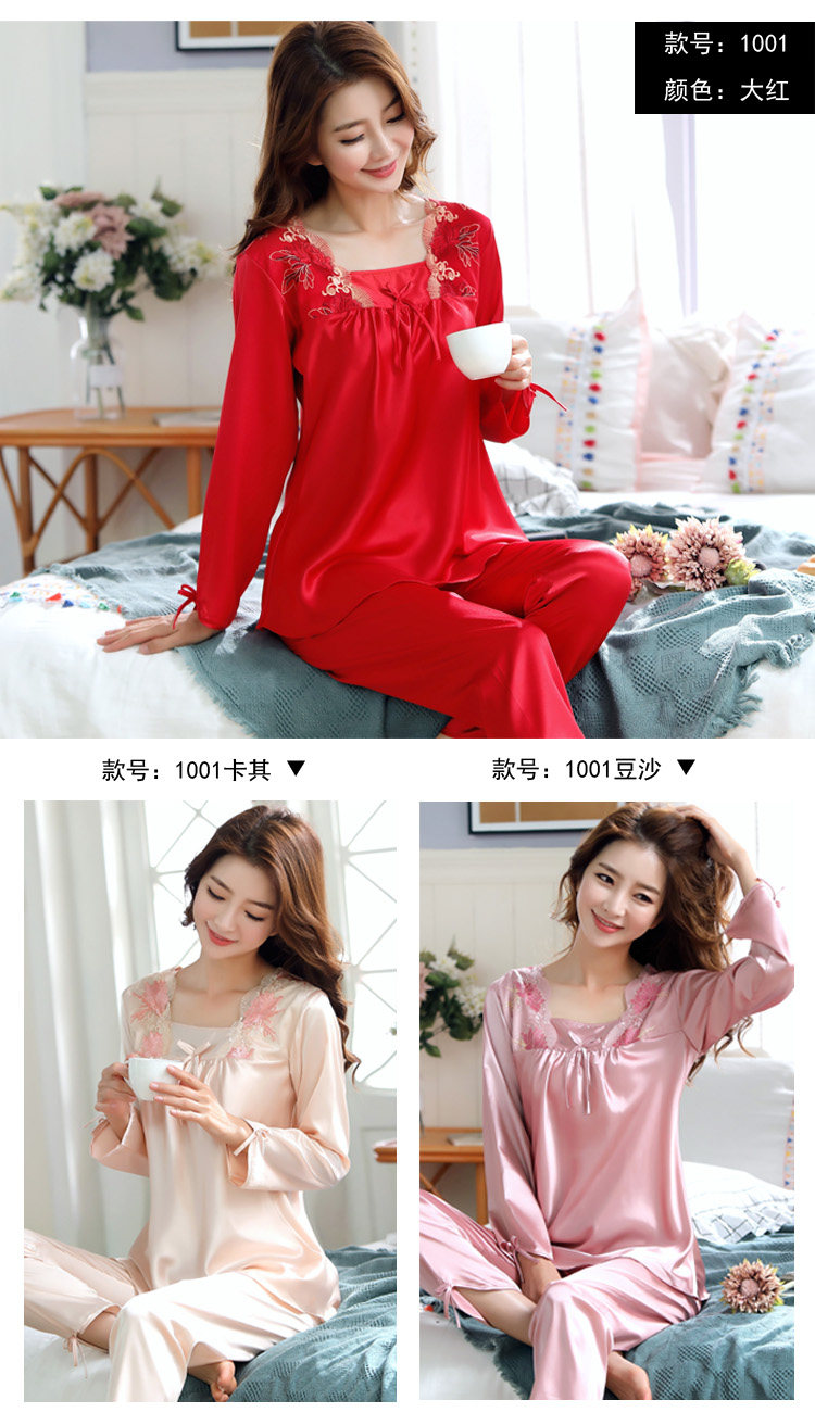 女夏季睡衣两件套薄款长袖冰丝性感真丝绸