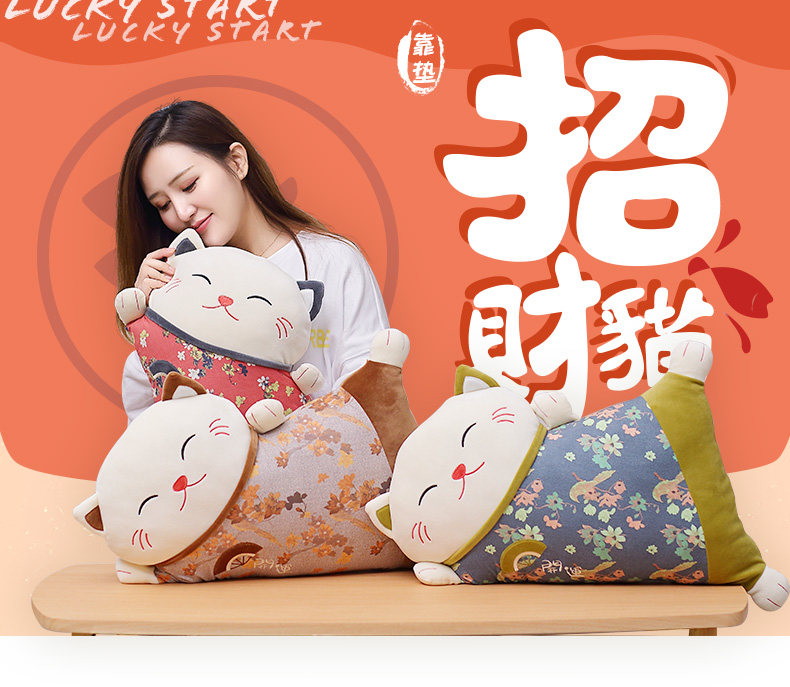 【招财猫抱枕】办公室护腰垫客厅沙发靠枕
