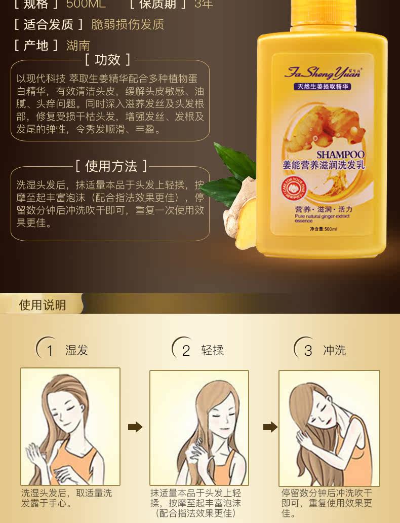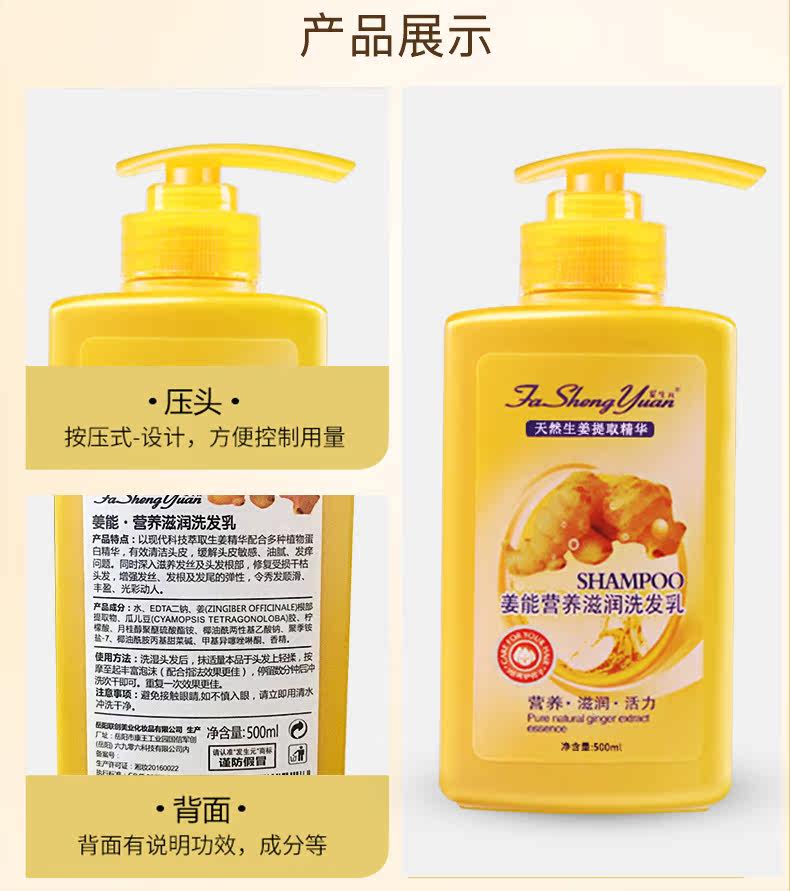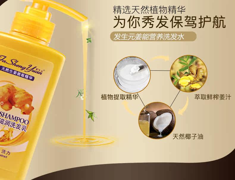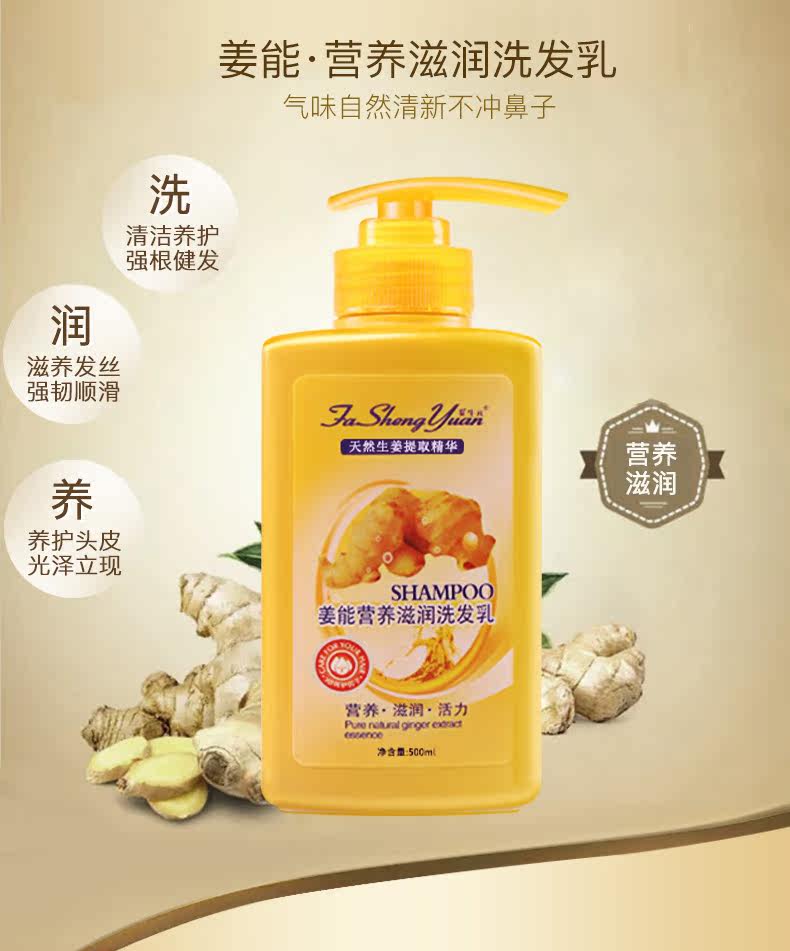 发生元姜能营养滋润洗发乳,严选鲜榨老姜汁,纯植物配方,快速渗透,深层滋养头皮,强韧发根,抚平毛躁,清爽控油,令秀发光泽顺滑。