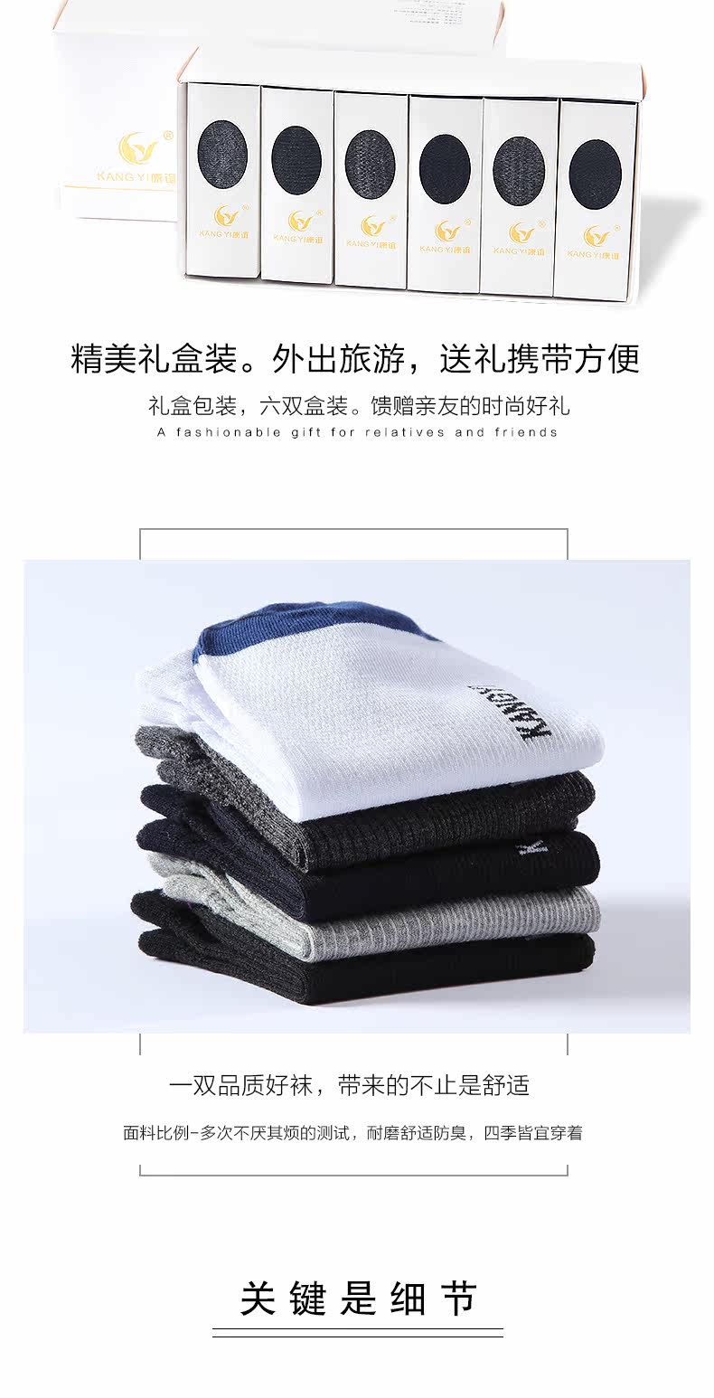 本款产品比同行质量好上几倍,优质精梳棉,6双盒装短筒防臭棉袜四季可穿,透气舒适,型男绅士的选择,健康睡眠,康谊相伴。赠运费险