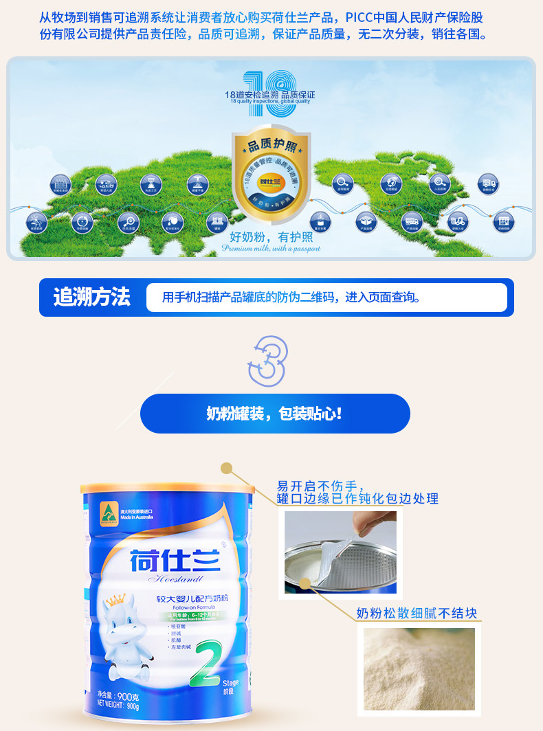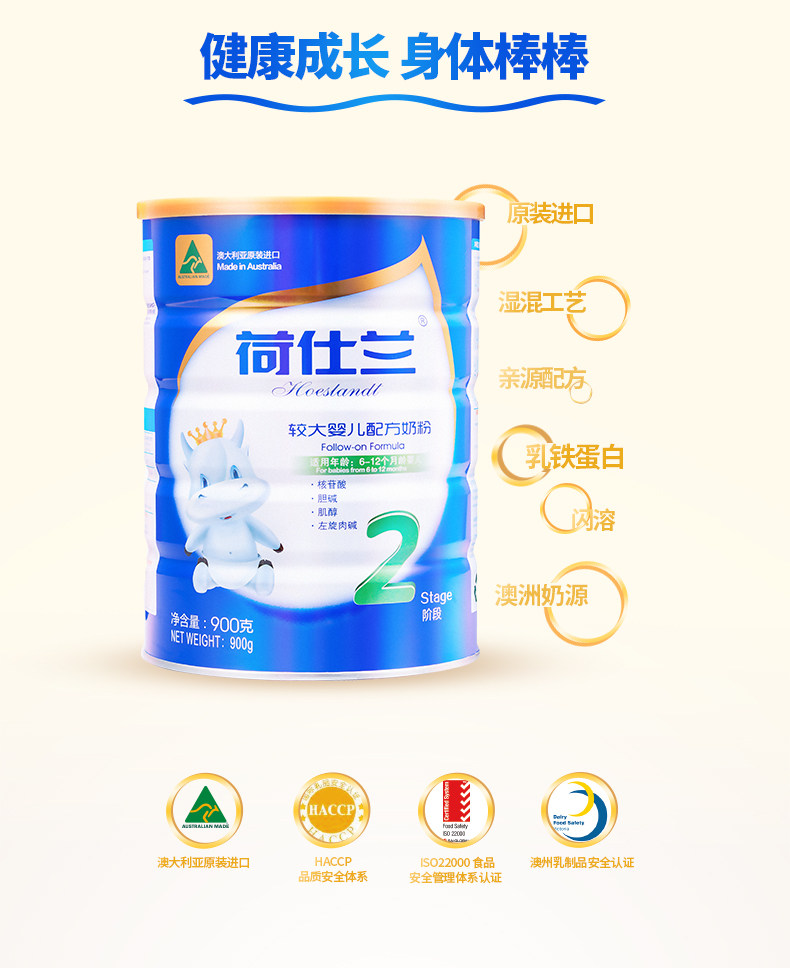 荷仕兰(Hoeslandt)幼儿,LTF奶粉2段,6-12个月900g(NEW)澳大利亚原罐进口,营养均衡,易吸收,防腹泻,赠运费险,宝妈的优先选择,大品牌值得信赖.