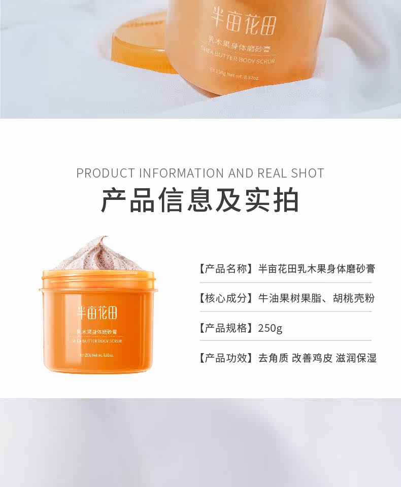 半亩花田正品,买就送小木勺,身体深层清洁,去角质去鸡皮肤,滋养嫩滑,天然植物去角质,温和不刺激,按摩无痛感,轻松还你嫩白肌肤