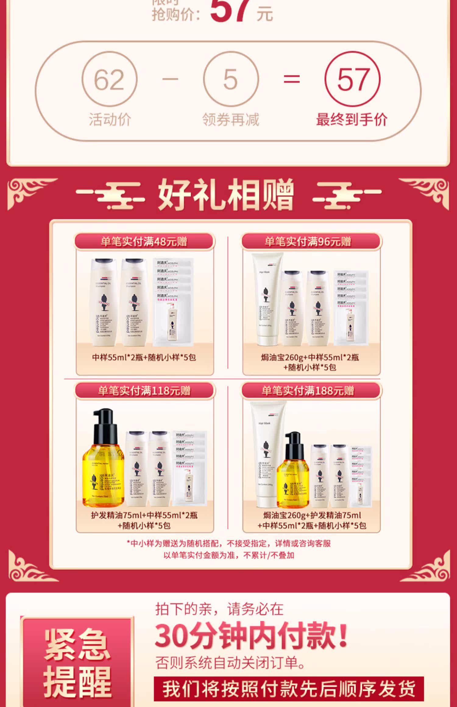 阿道夫护发素焗油宝损伤修护补水