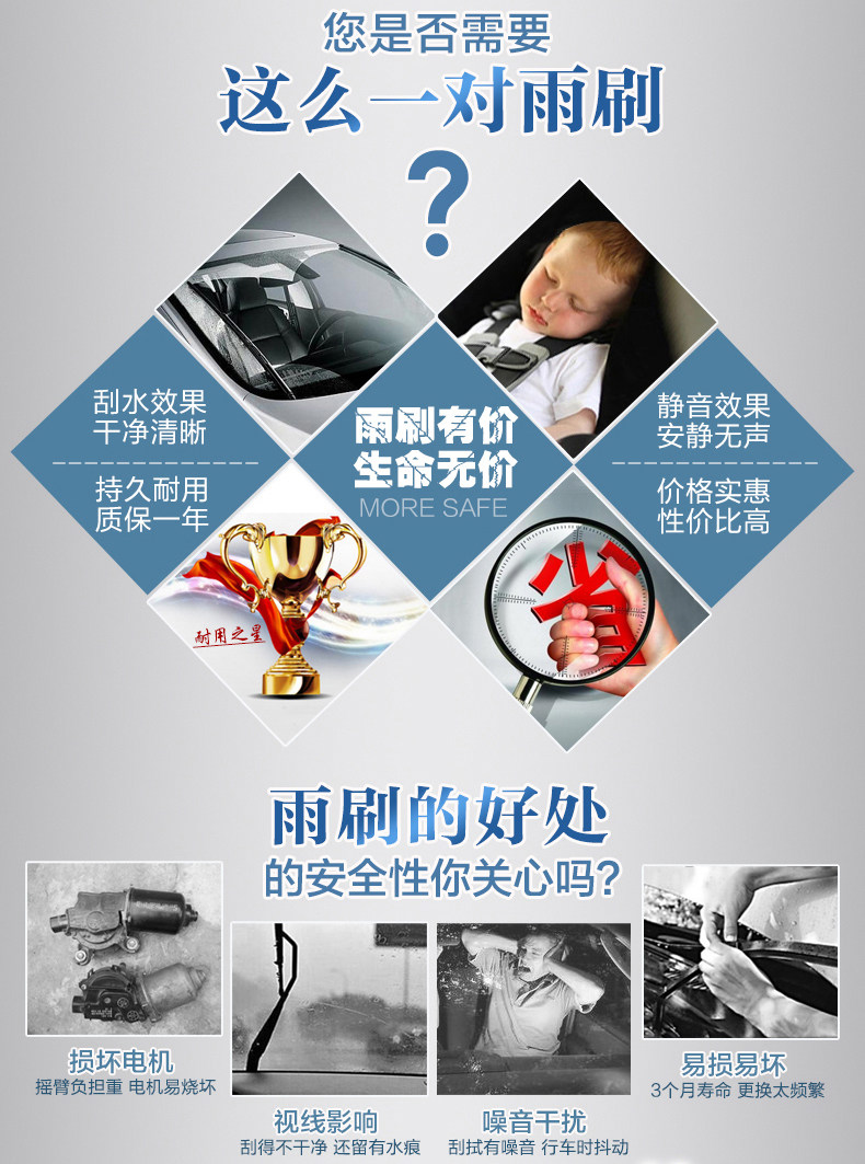 99%车型通用,厂家直销,天然橡胶,高清静音,稳定耐磨钢片,清晰视野,为你保驾护航,老司机的正确之选!