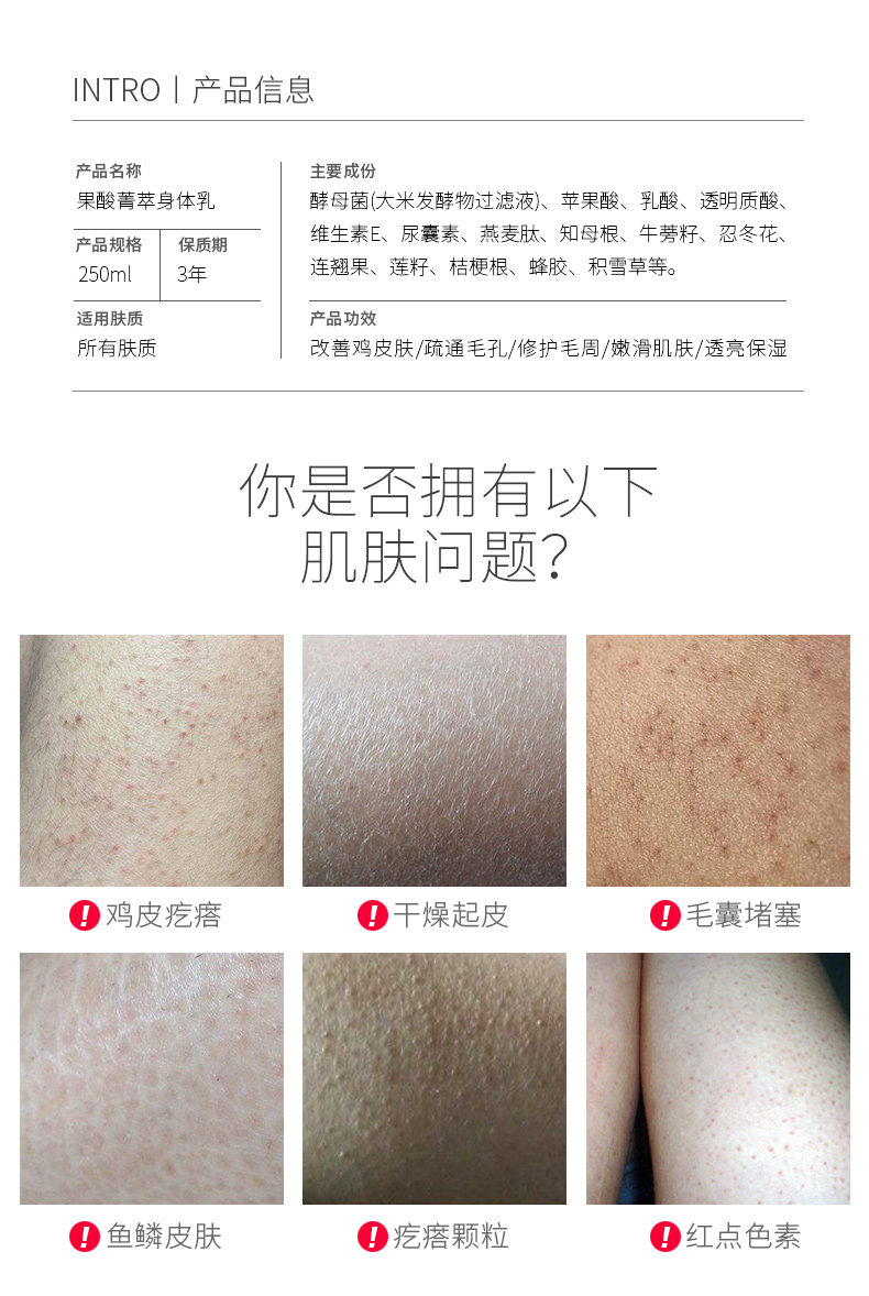 【买就送小只身体乳】果酸成分保湿却不油腻,鸡皮疙瘩完全改善,肌肤变得光滑细腻,气味独特清新自然,洗完澡抹一抹,远离干燥肌、蛇皮纹、红点疙瘩【赠送运险】