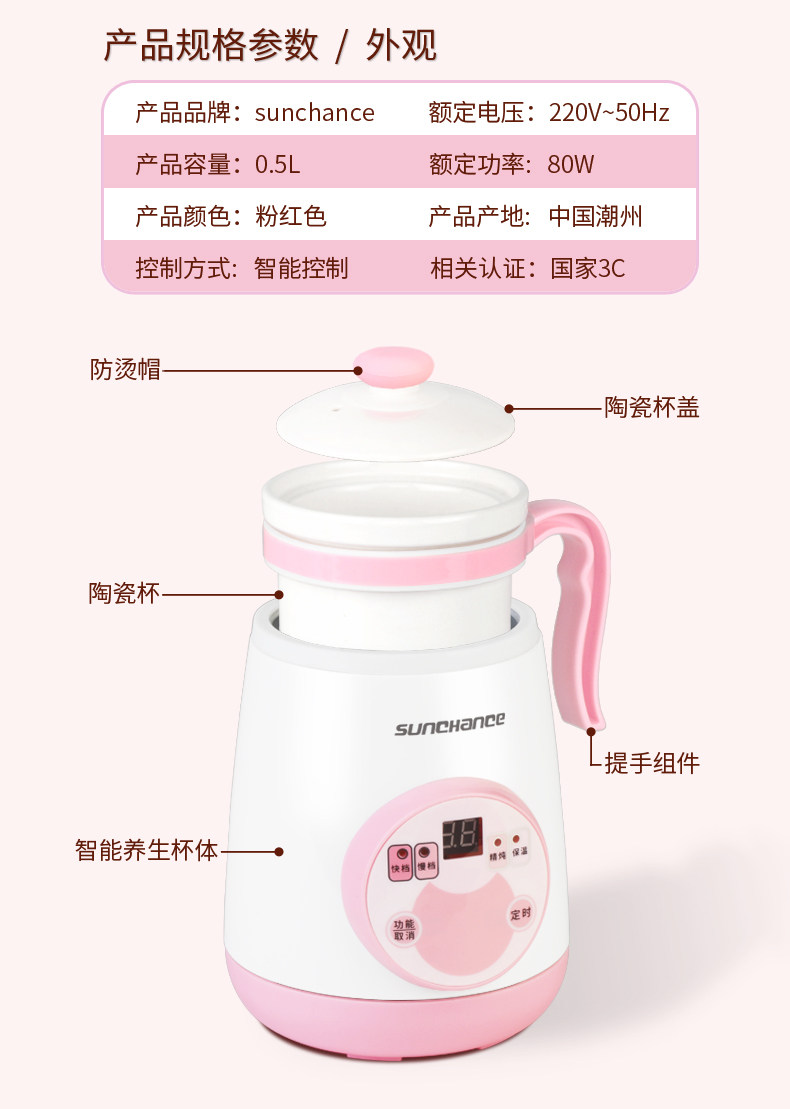 采用进口锂辉石,杯身使用环保陶瓷,高效聚热,清洁釉面,易清洗,便捷使用的私人饮用杯,加热,保温,炖煮,一机多用,活动价超值,速抢~【赠运险费】