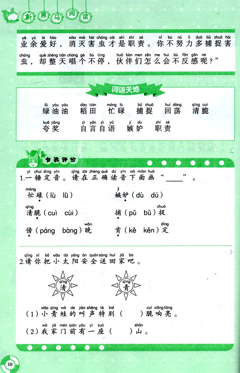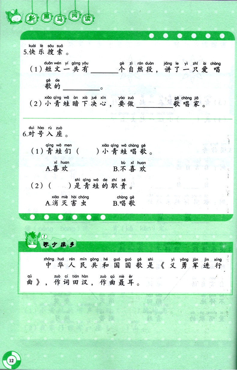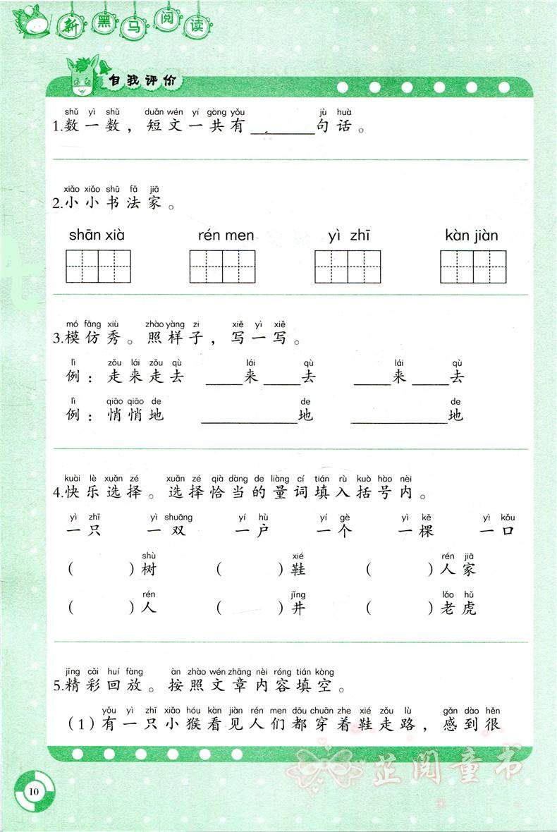 新版2册一年级新黑马阅读理解训练