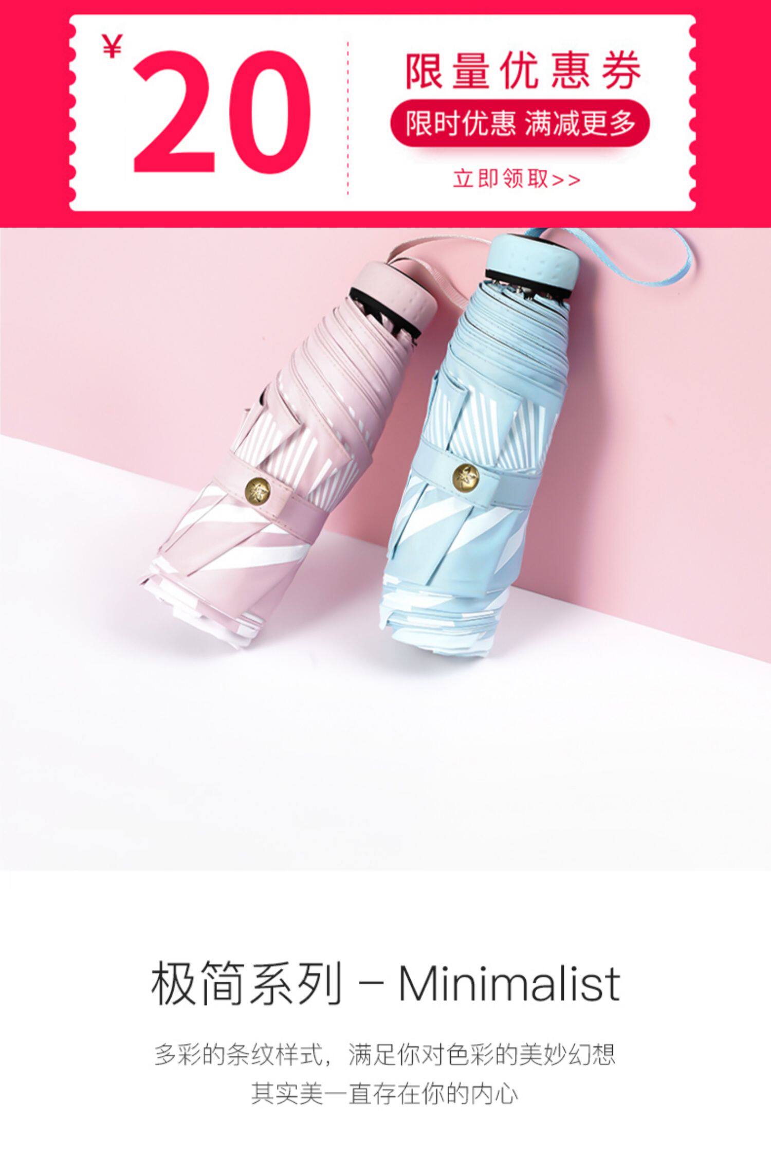 【红叶工厂店】一把“梦幻”的小雨伞,多彩条纹,迷你超轻。高密黑胶,科学防晒。荷叶拒水,晴雨两用。炎炎夏日,值得拥有。【赠运费险】