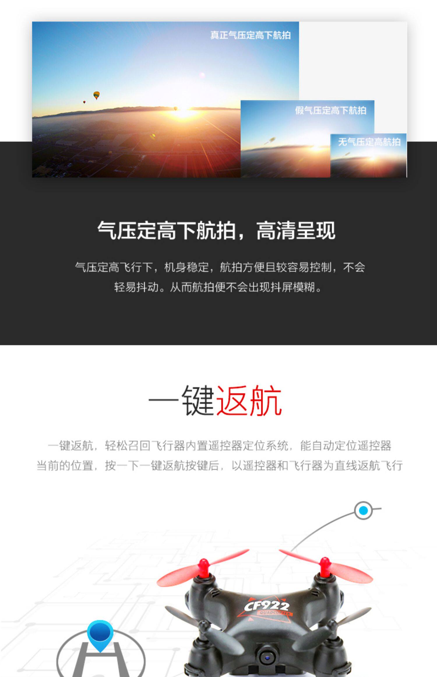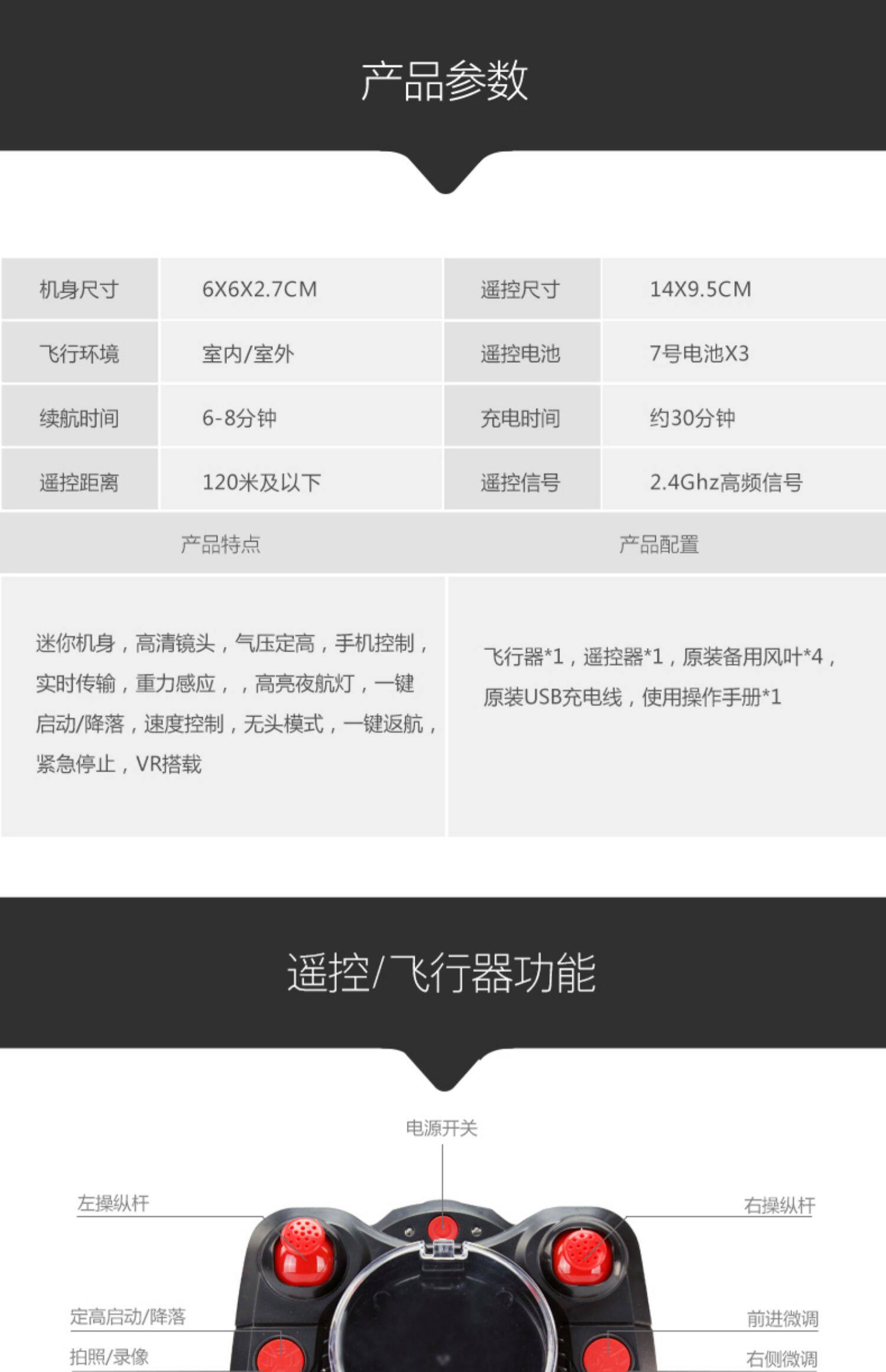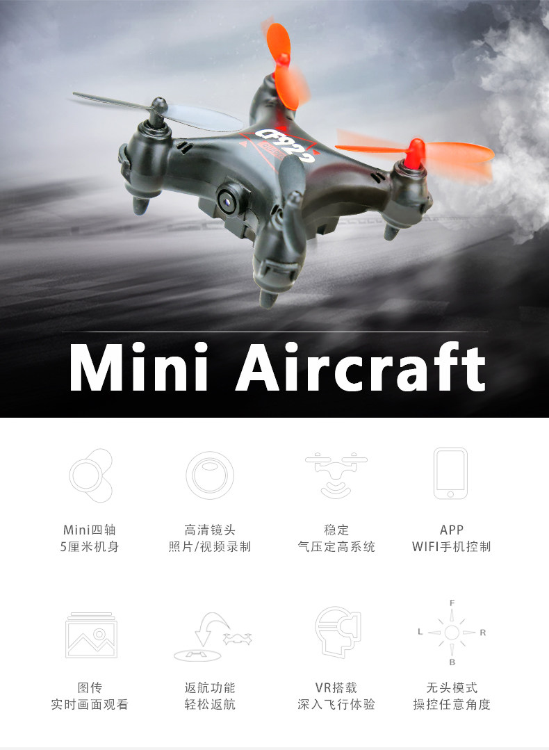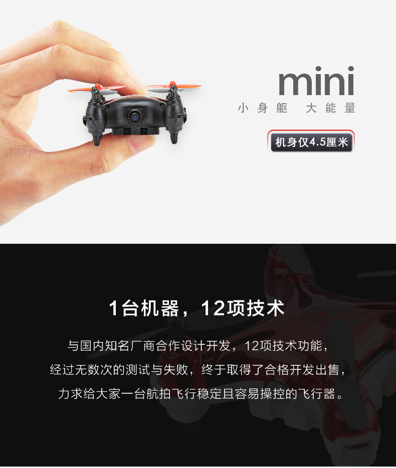 【店铺30券】小身躯,大容量,机身仅4.5厘米,1台机器,12项技术,迷你机身,Q萌造型,APP观看航拍画面,画面清晰,气压定高系统,一键反航,360度连续翻滚,自由调节3档速度,