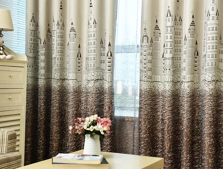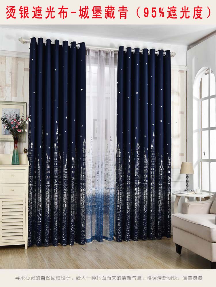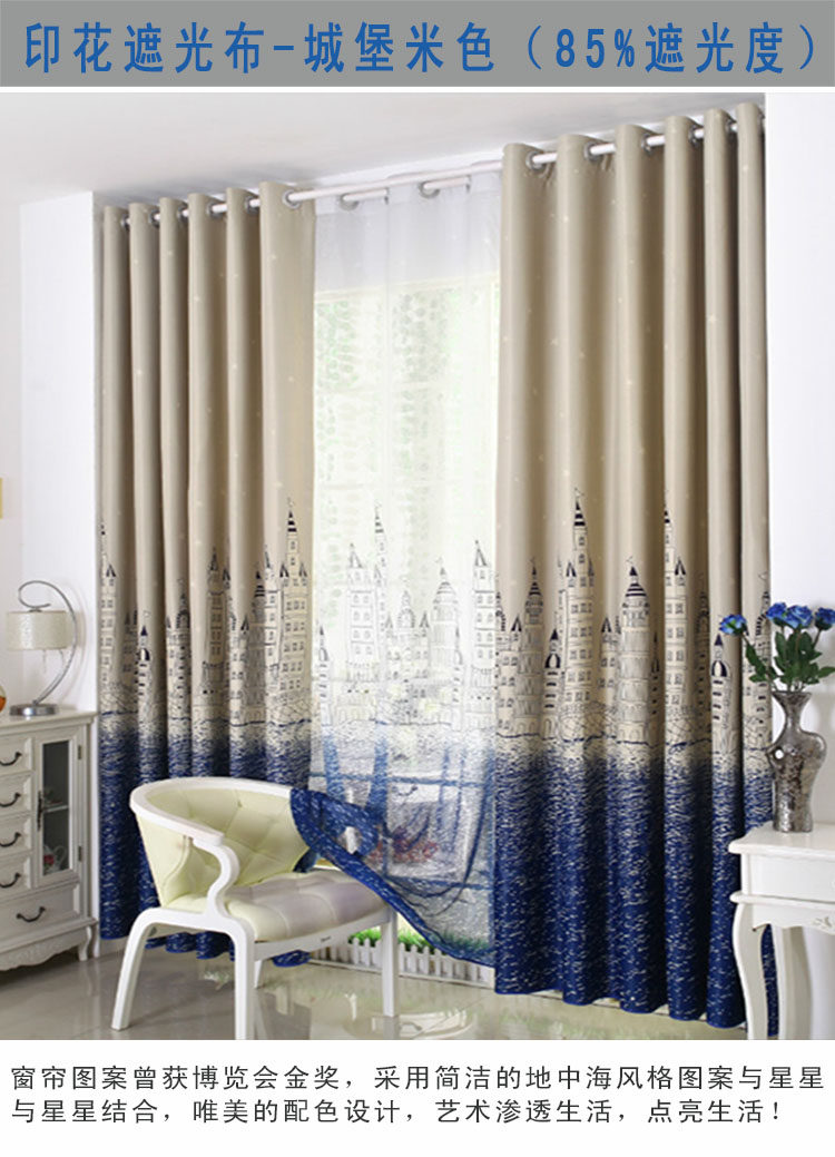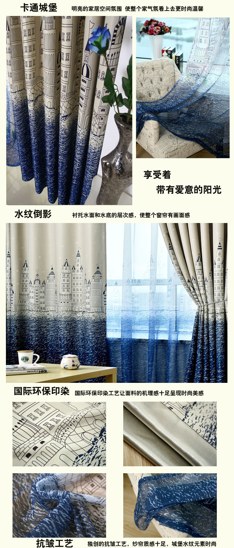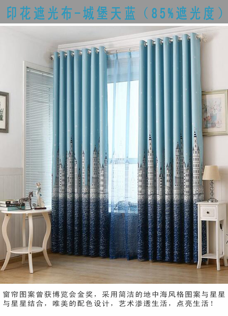 卡通儿童房蓝色城堡窗帘卧室全遮阳特价