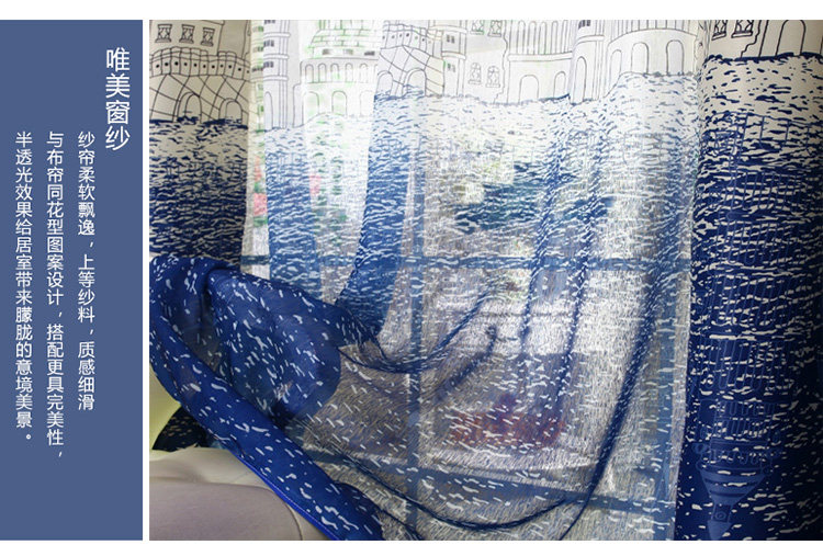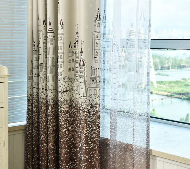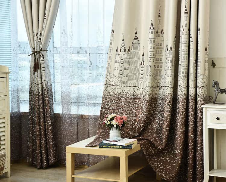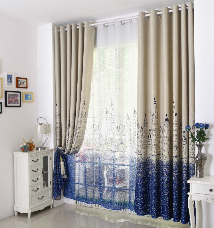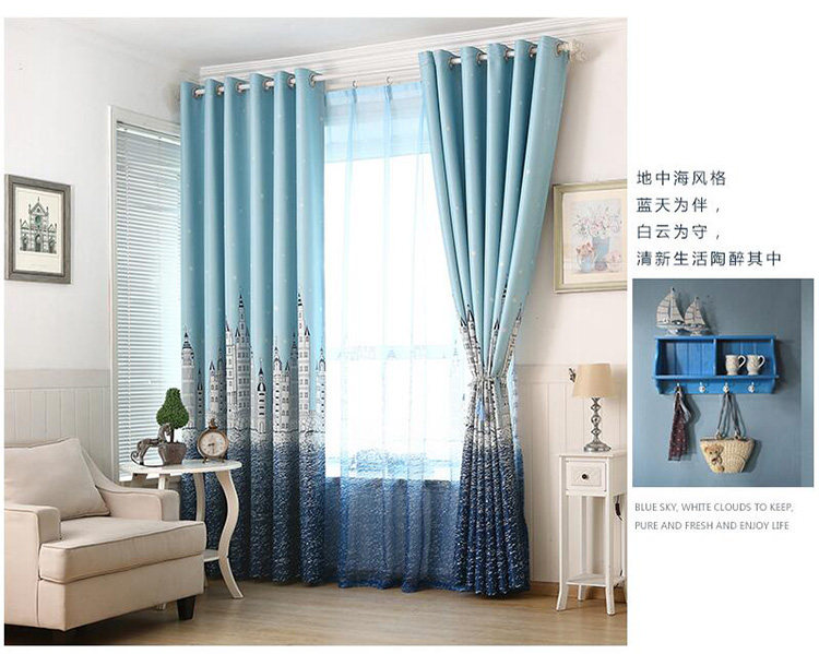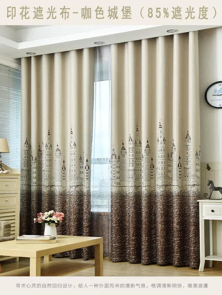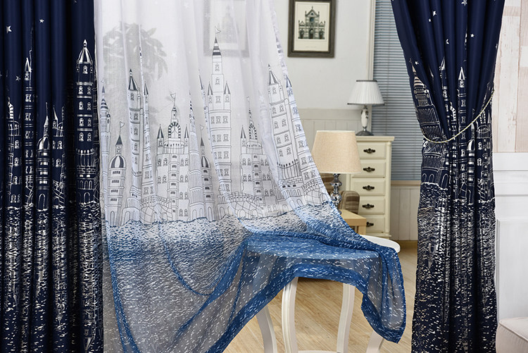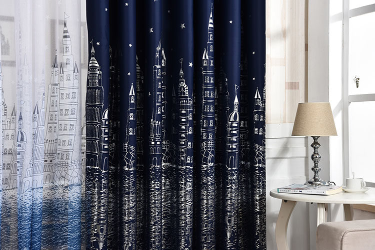 卡通儿童房蓝色城堡窗帘卧室全遮阳特价