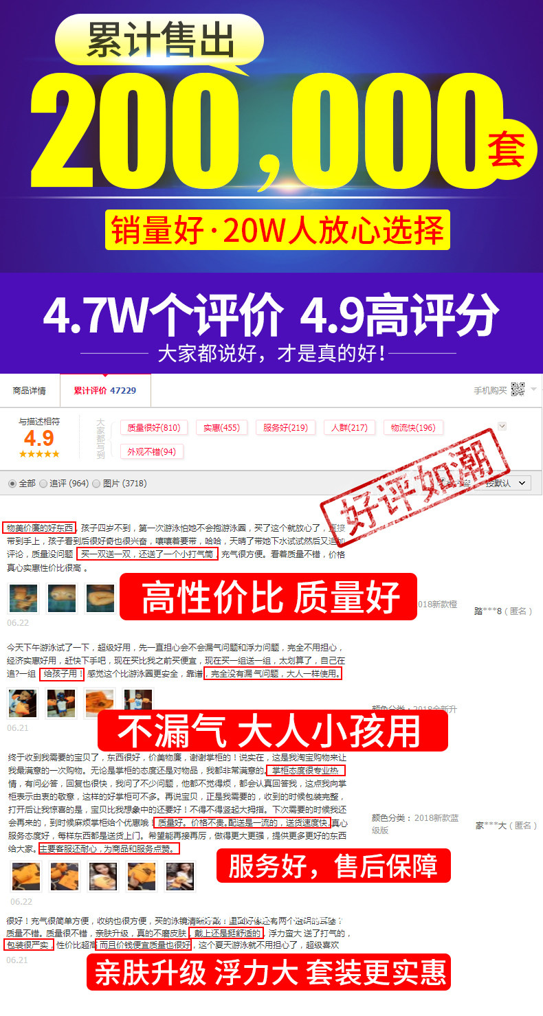 【买一送一还送打气筒】想学游泳吗?想更快学好吗?手臂圈戴起,游泳无压力,大浮力,双气囊设计,防漏气加厚气嘴,加厚抗压材质,人小孩都能用~【赠运费险】